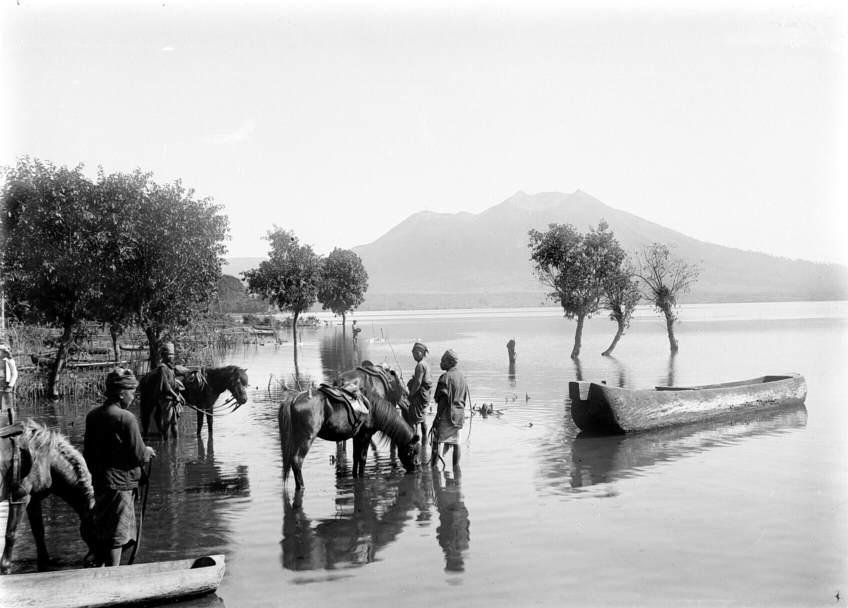 Prauwen aan de rand van het Baturmeer