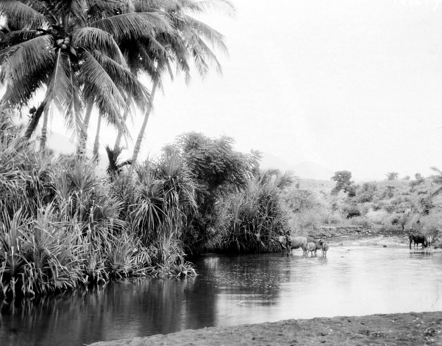 Runderen in een lagune bij Koeboe