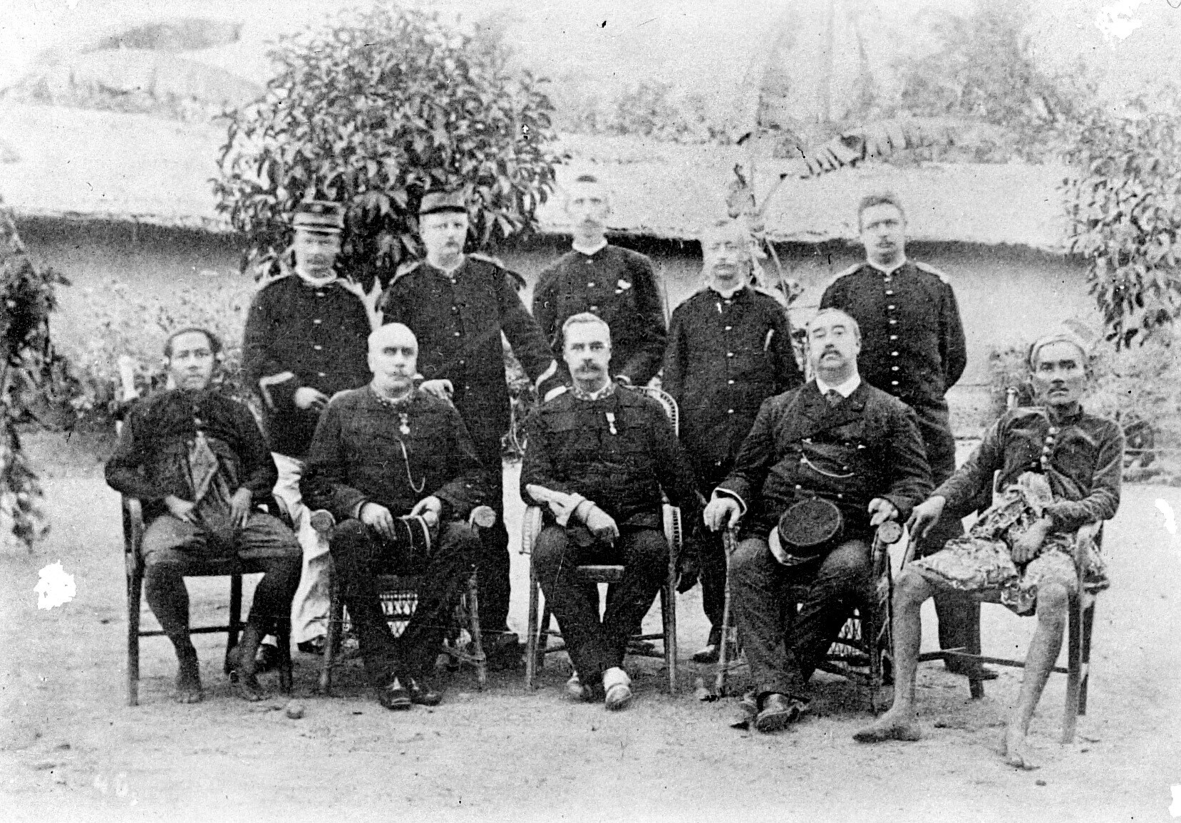 Groepsportret van de volgende personen. voorste rij ...