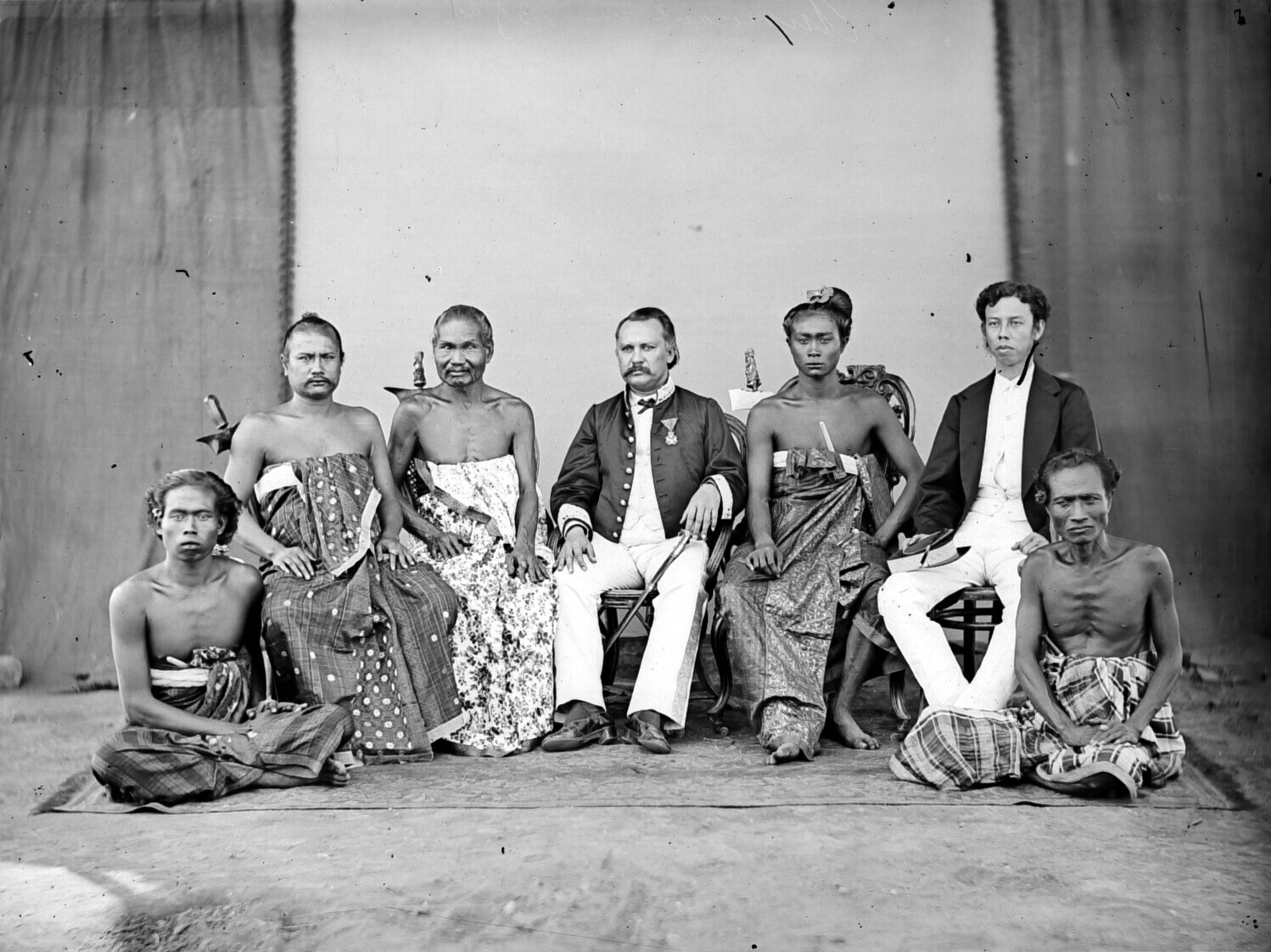 Portret van een groep Balinezen en een Europese best...