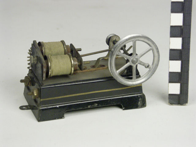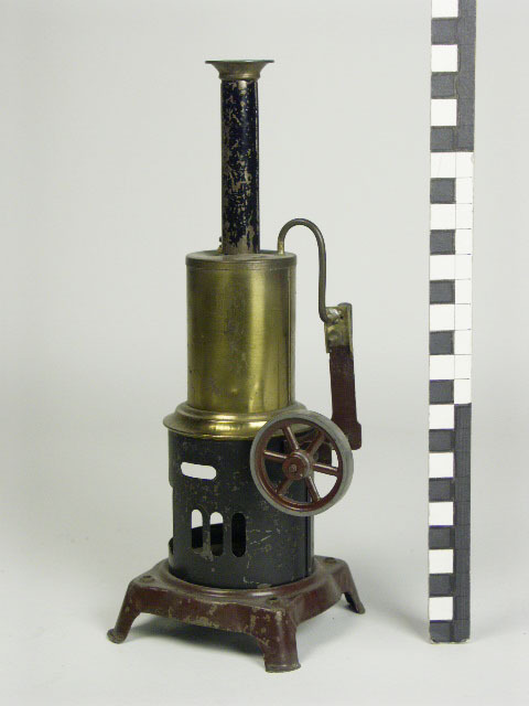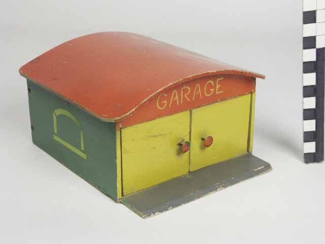 Auto van hout en blik in de kleuren blauw, zwart en ...