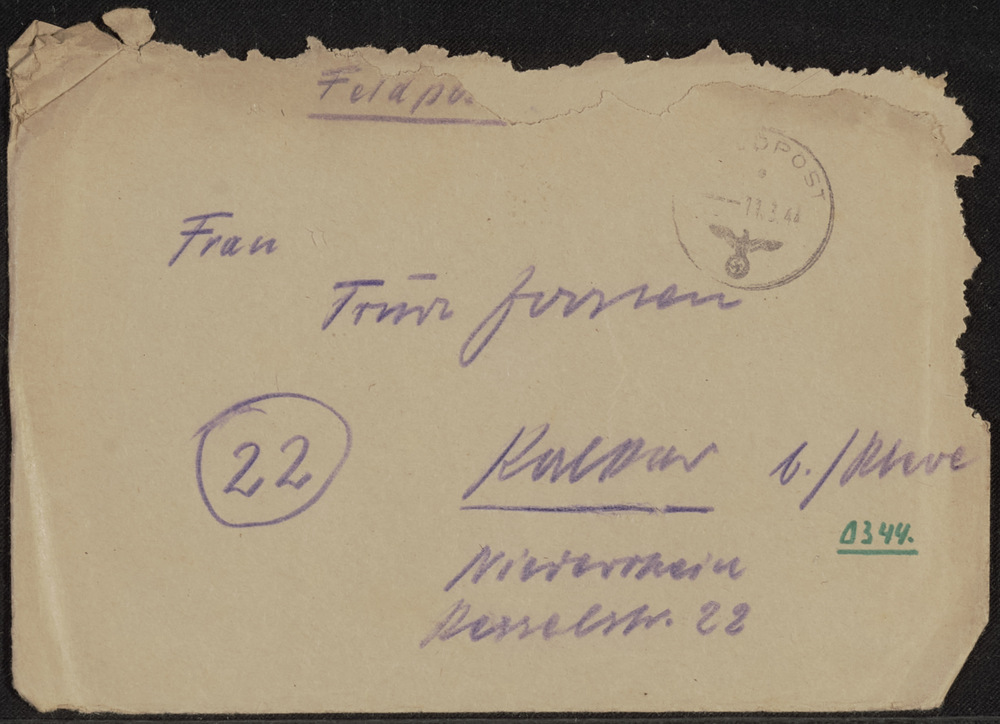 Bruine envelope feldpost gedateerd 11.3.'44