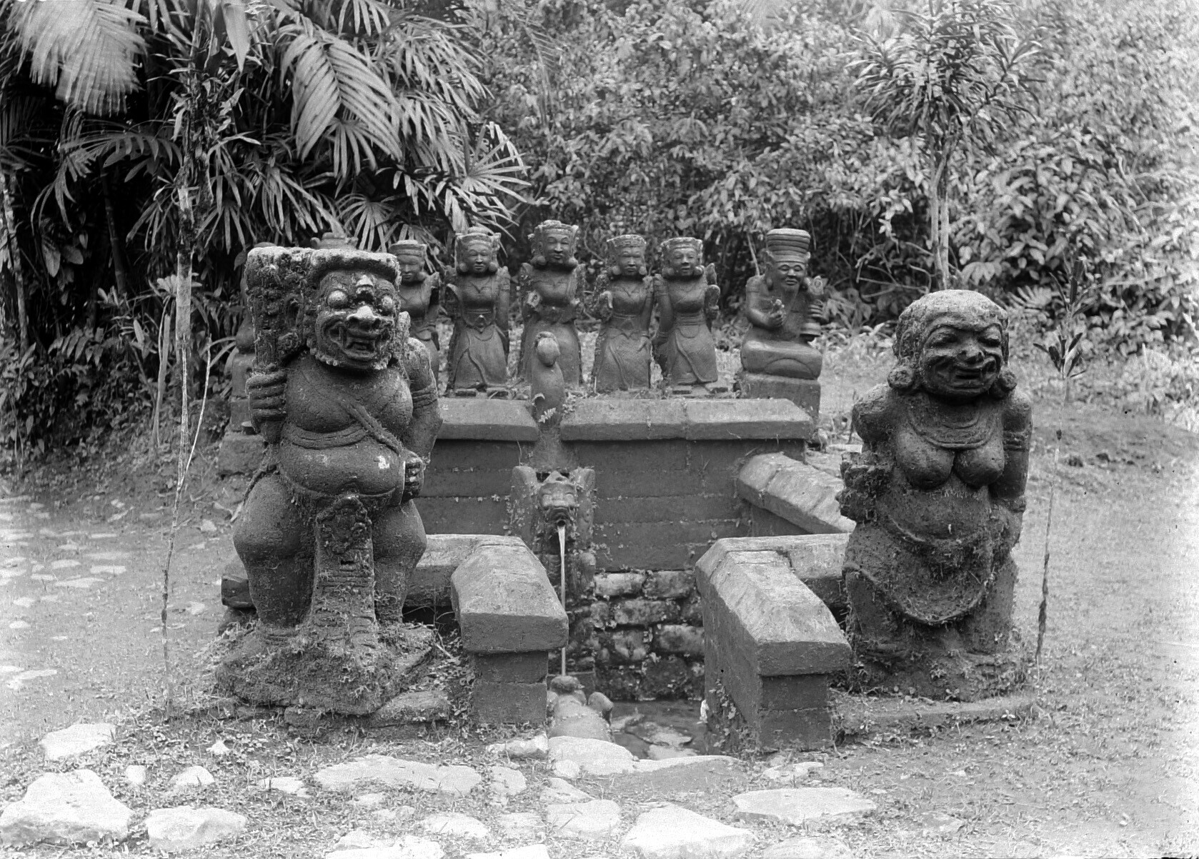 Altaar met beeld onder een waringin bij een bron, Mu...