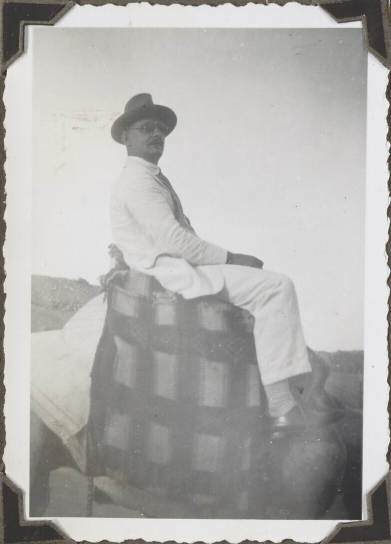 Portret van een man op een kameel