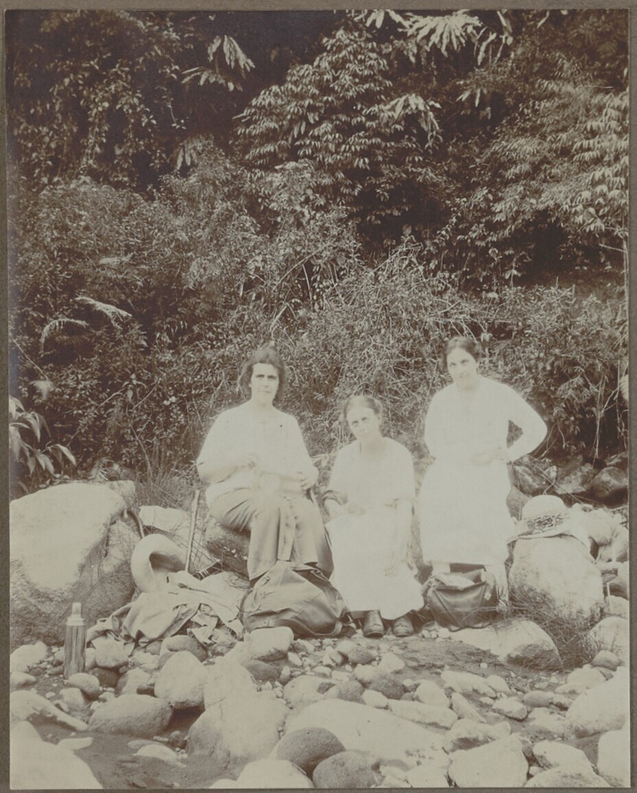 Portret van drie vrouwen op rotsen