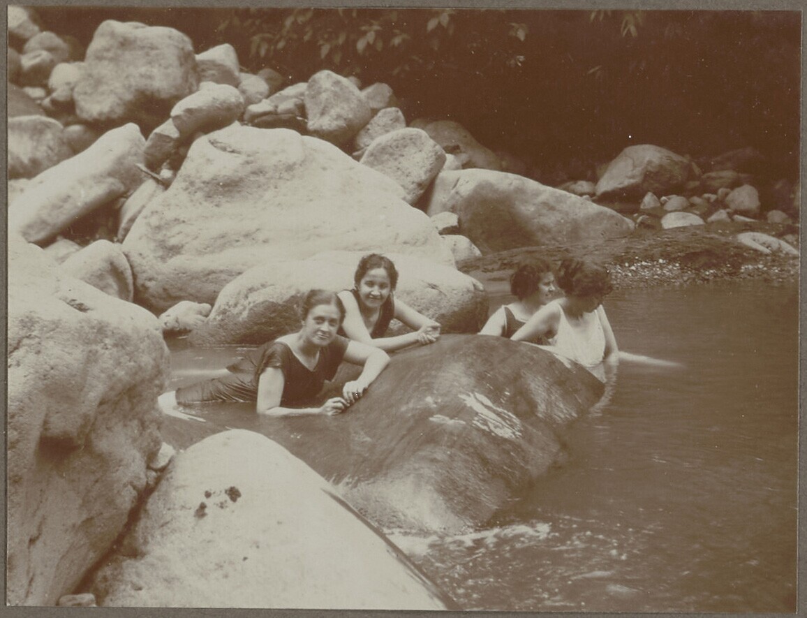 Portret van vier vrouwen in een waterval