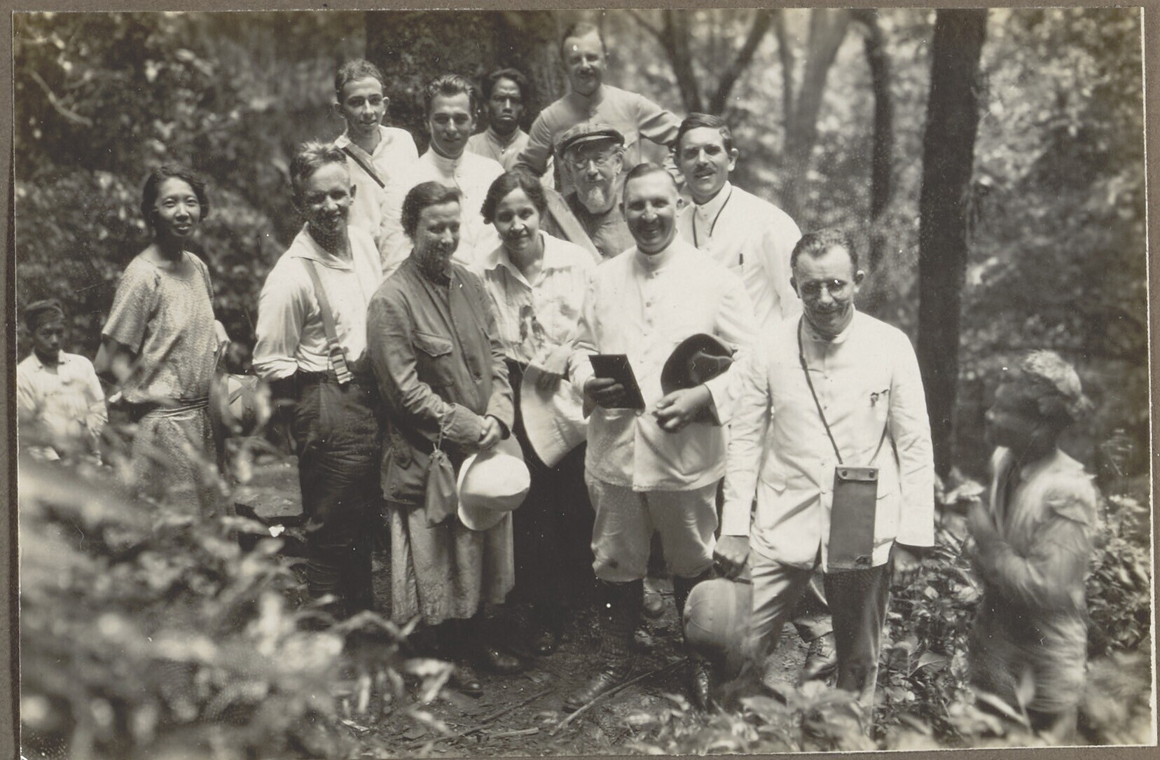 Portret van een groep mensen in het bos