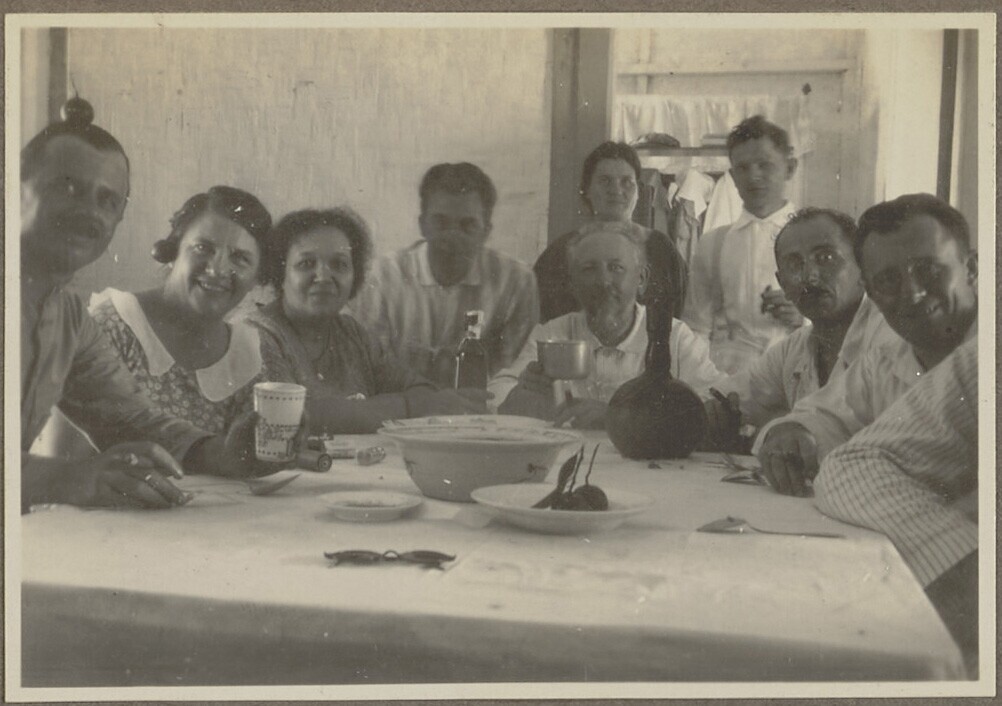 Portret van mannen en vrouwen aan de eettafel