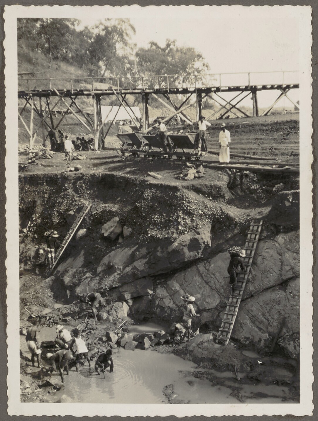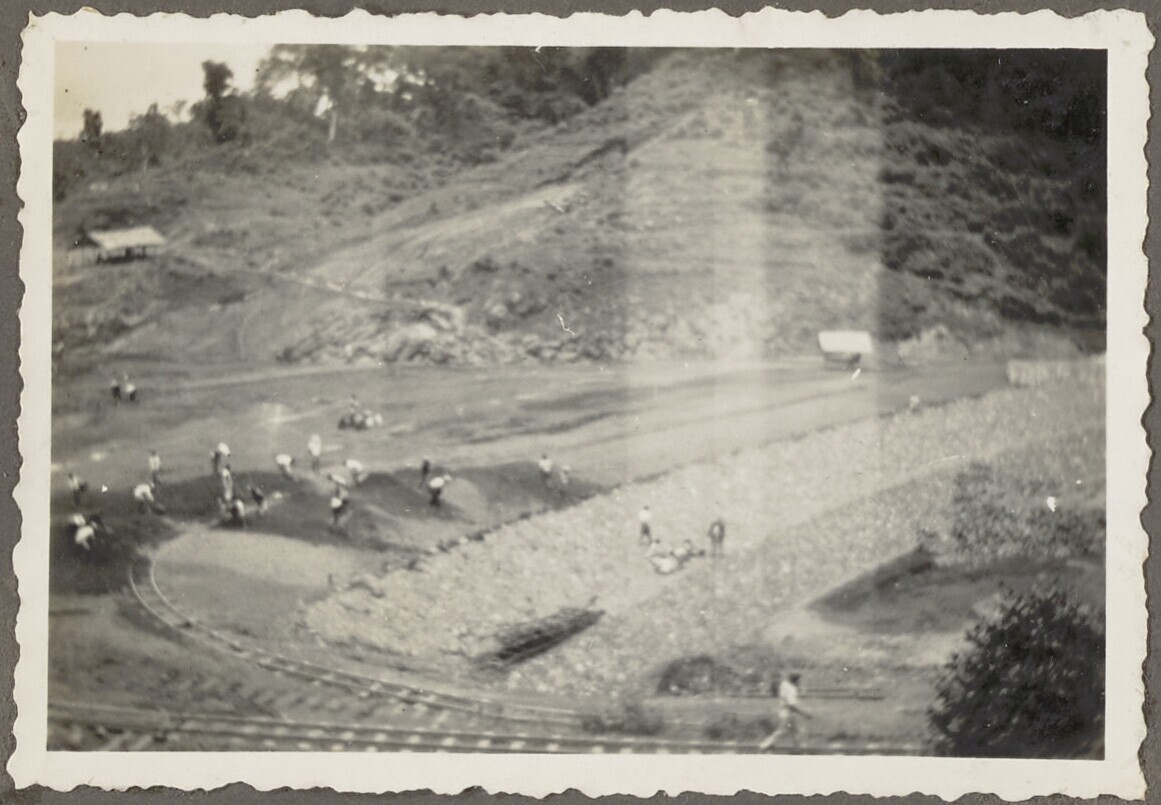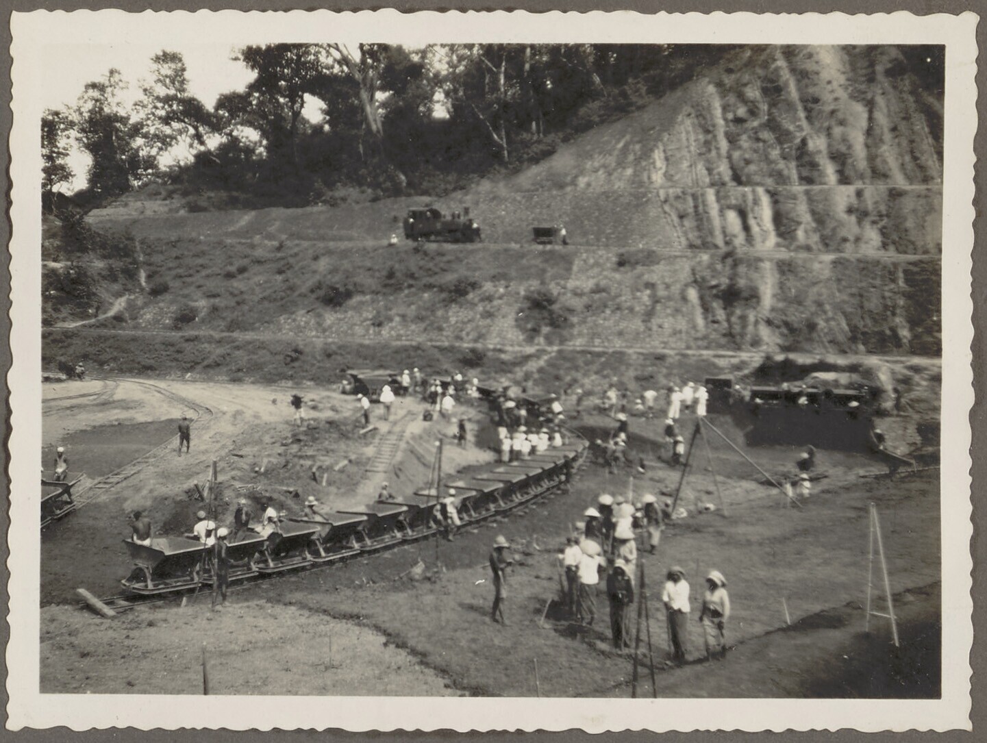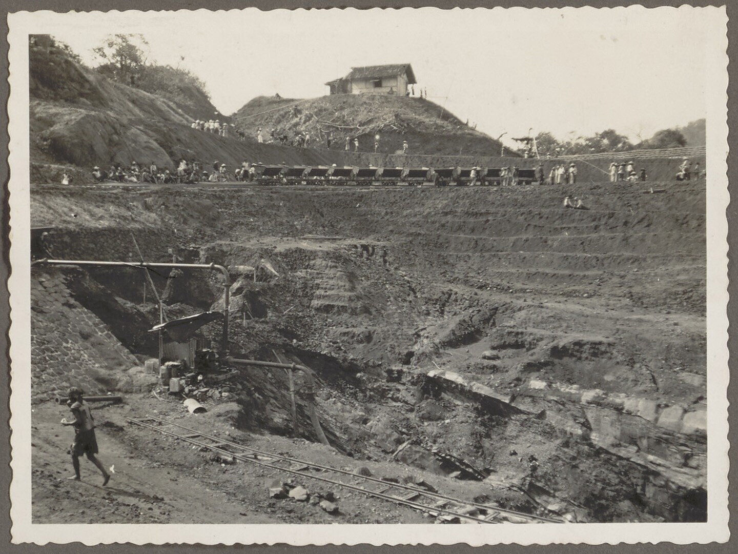 Javaanse arbeiders aan het werk bij het uitgraven va...