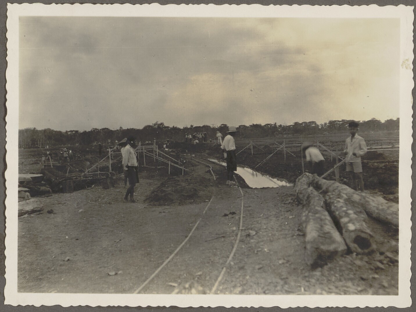 Javaanse arbeiders bezig met het ophogen van de dams...