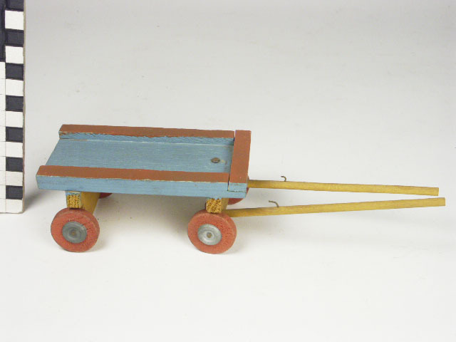 Beschilderde doos met draaimolen met 3 paardjes met ...