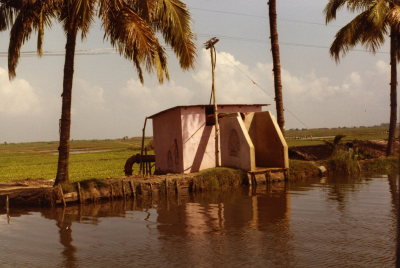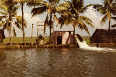 Landschap en gemaal in Kuttanad, India.