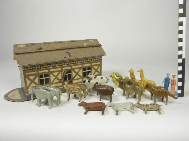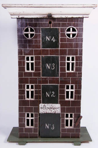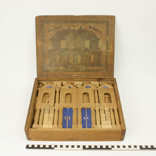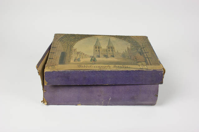 Doos met gebouwen gemaakt van een bouwplaat, 4 huize...