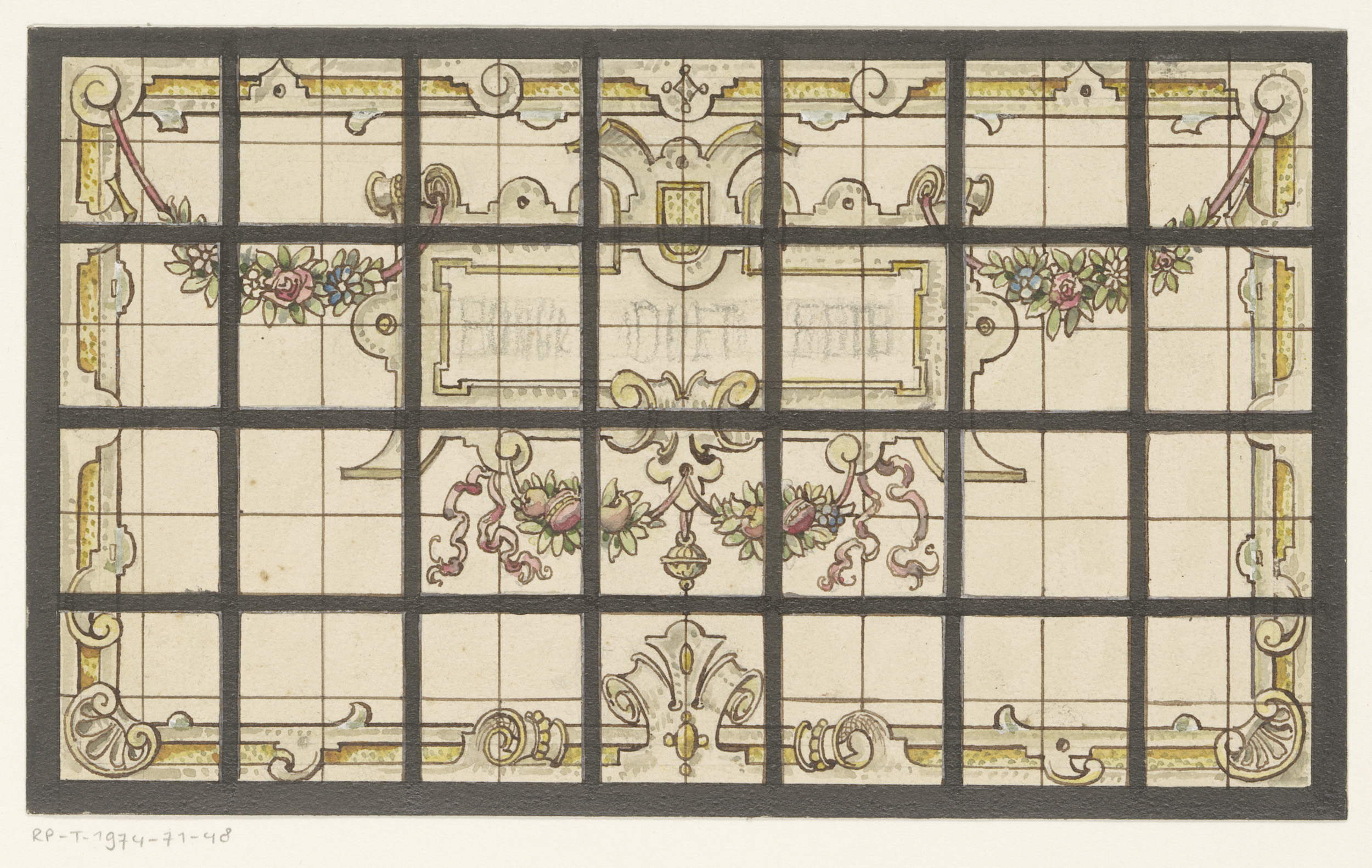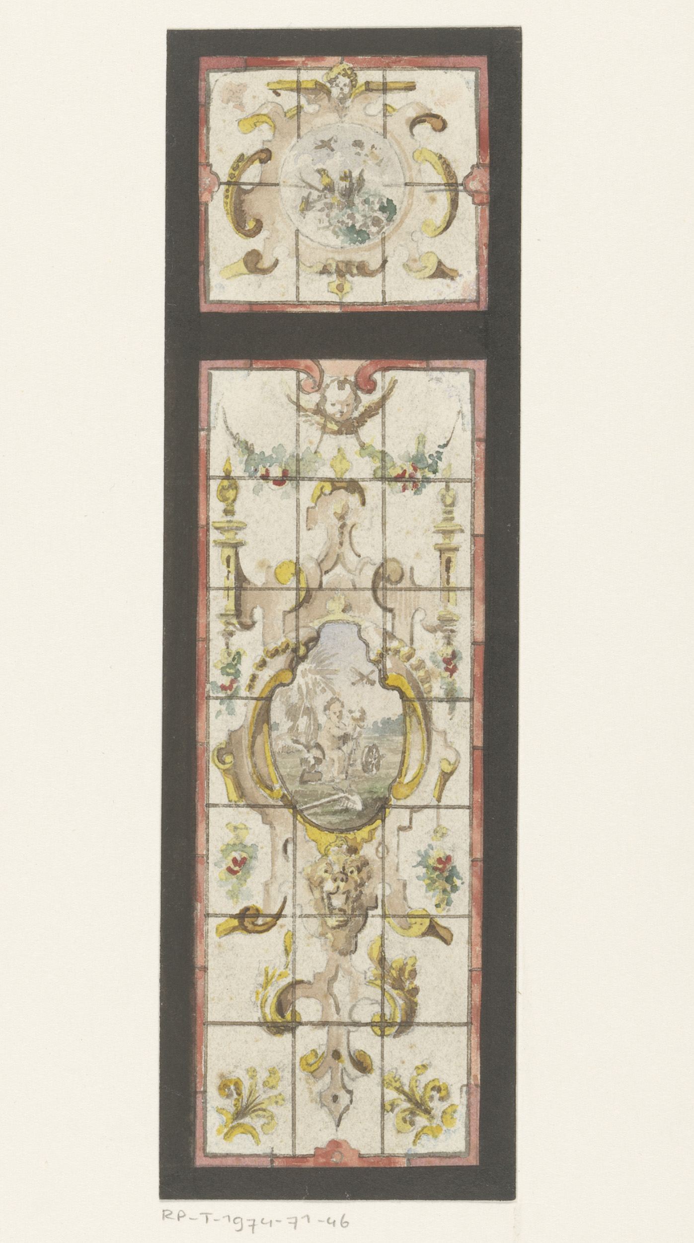 Ontwerp voor een glas in loodraam met cartouche en g...