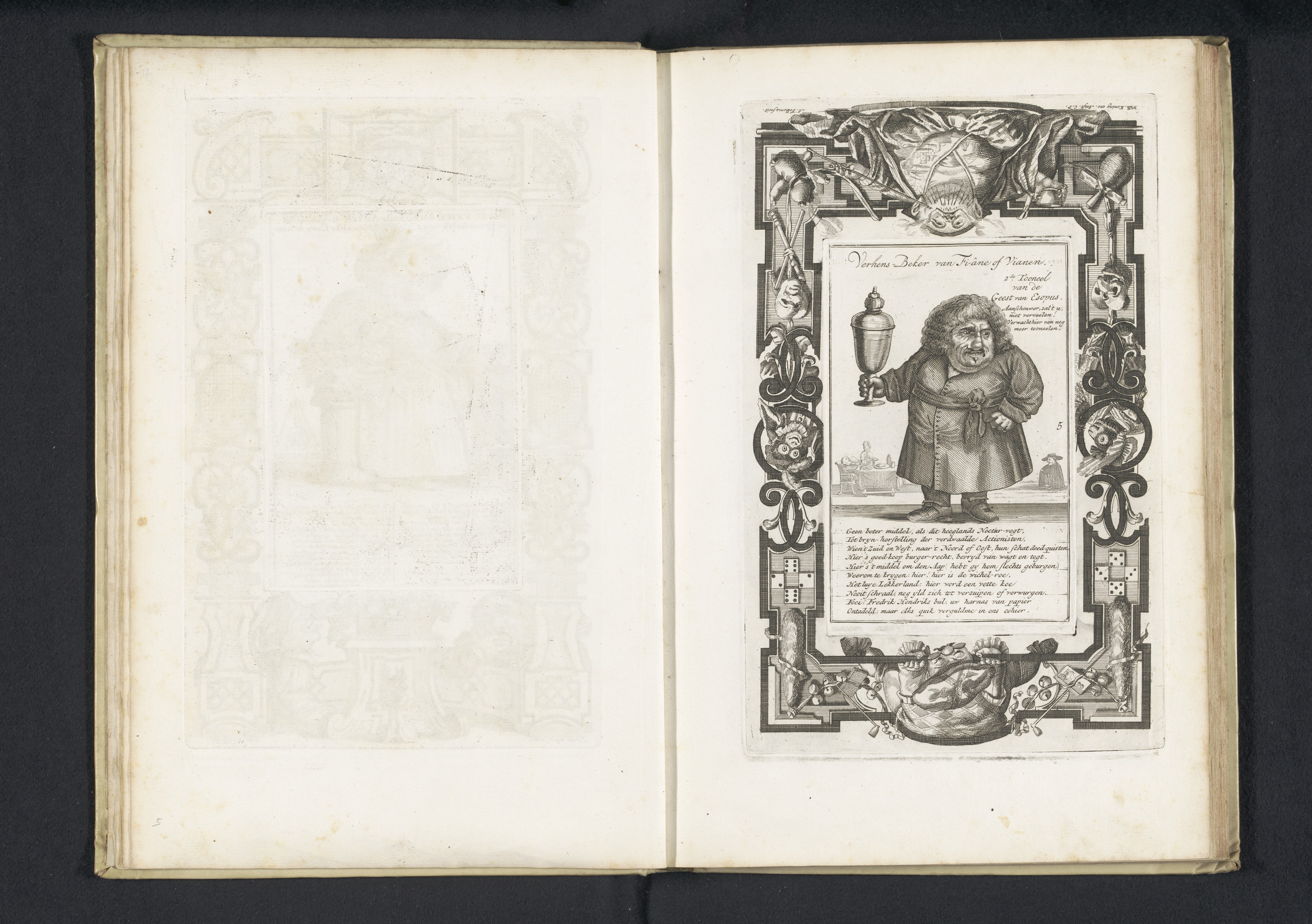 Een kleine mens in kamerjas met een grote beker, 1720