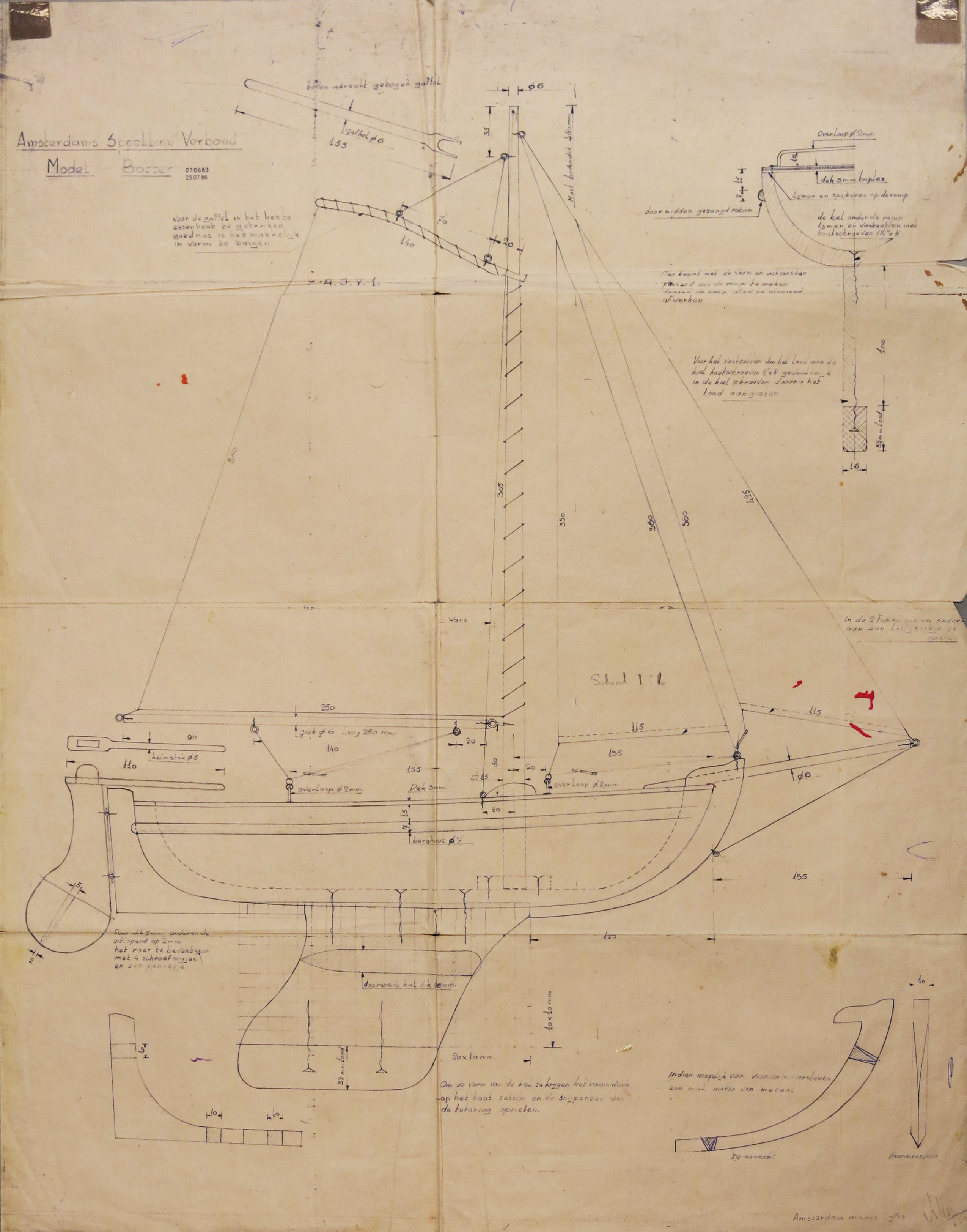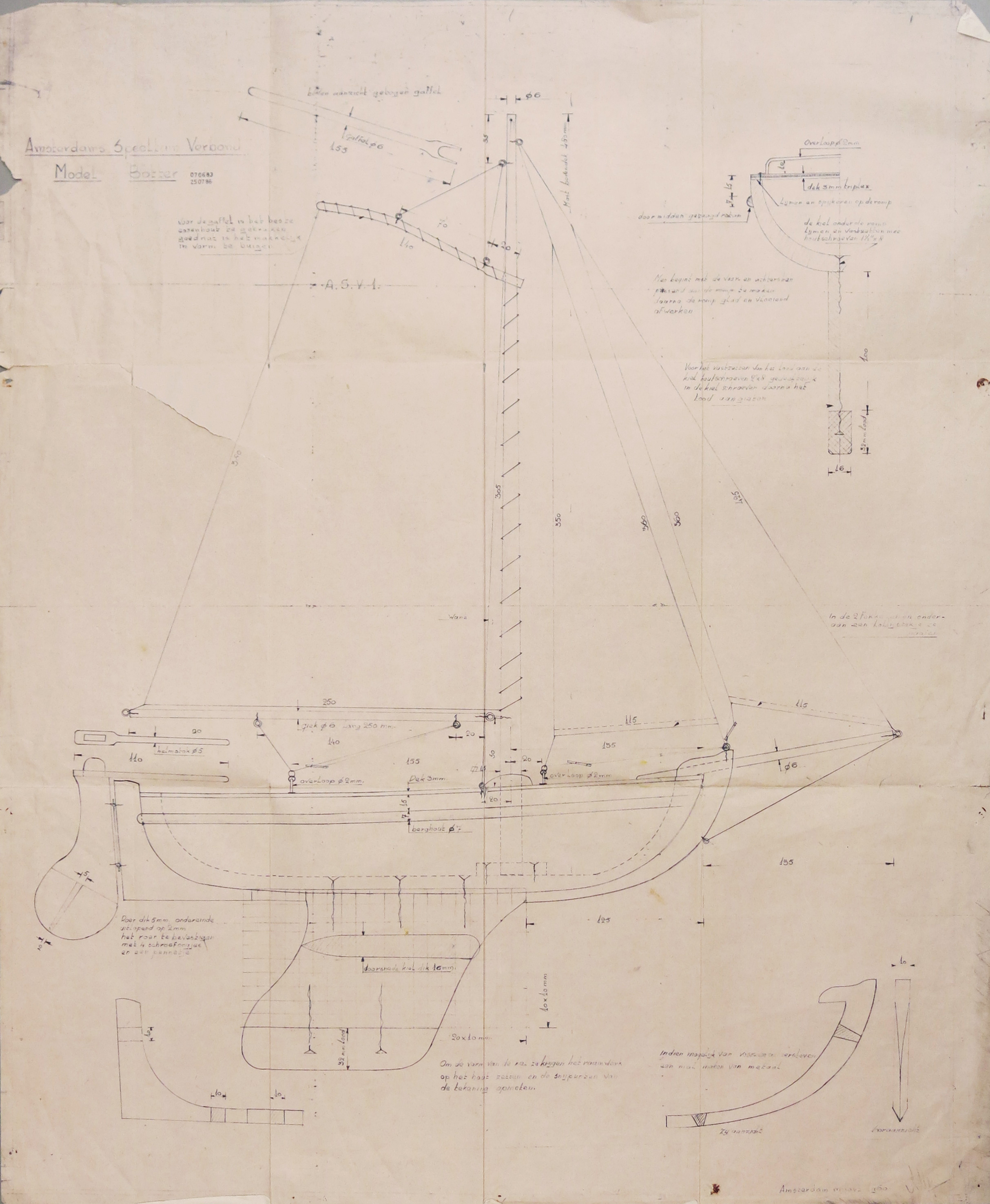 Bouwtekening voor modelboot, type botter