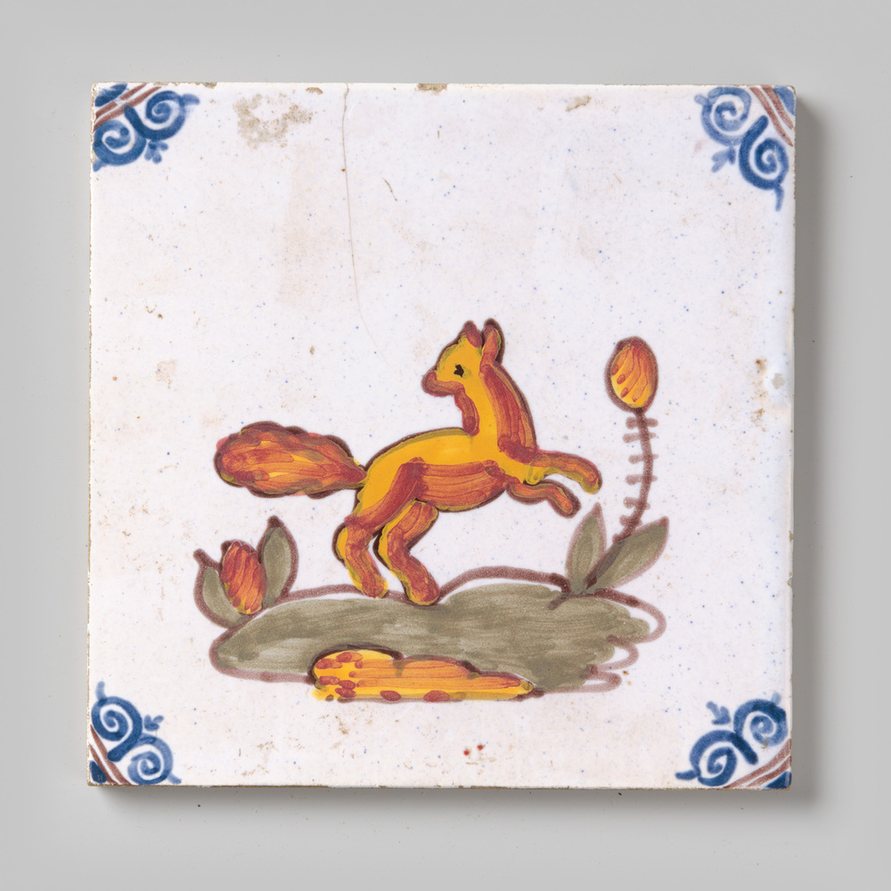 Tegel van keramiek met tinglazuur, voorstellende: he...