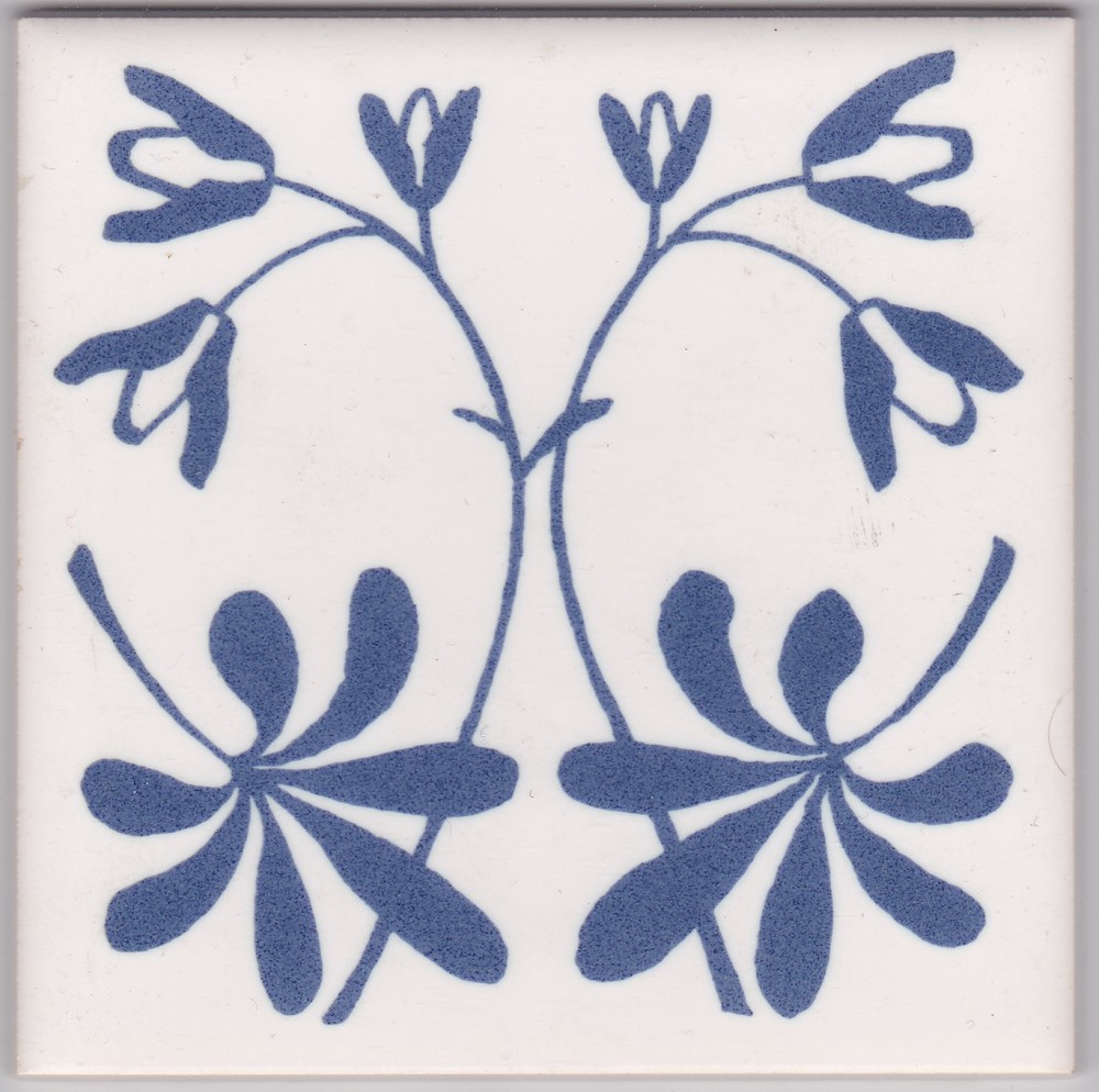 Tegel in zeefdruk, met voorstelling: decor Knot Gard...