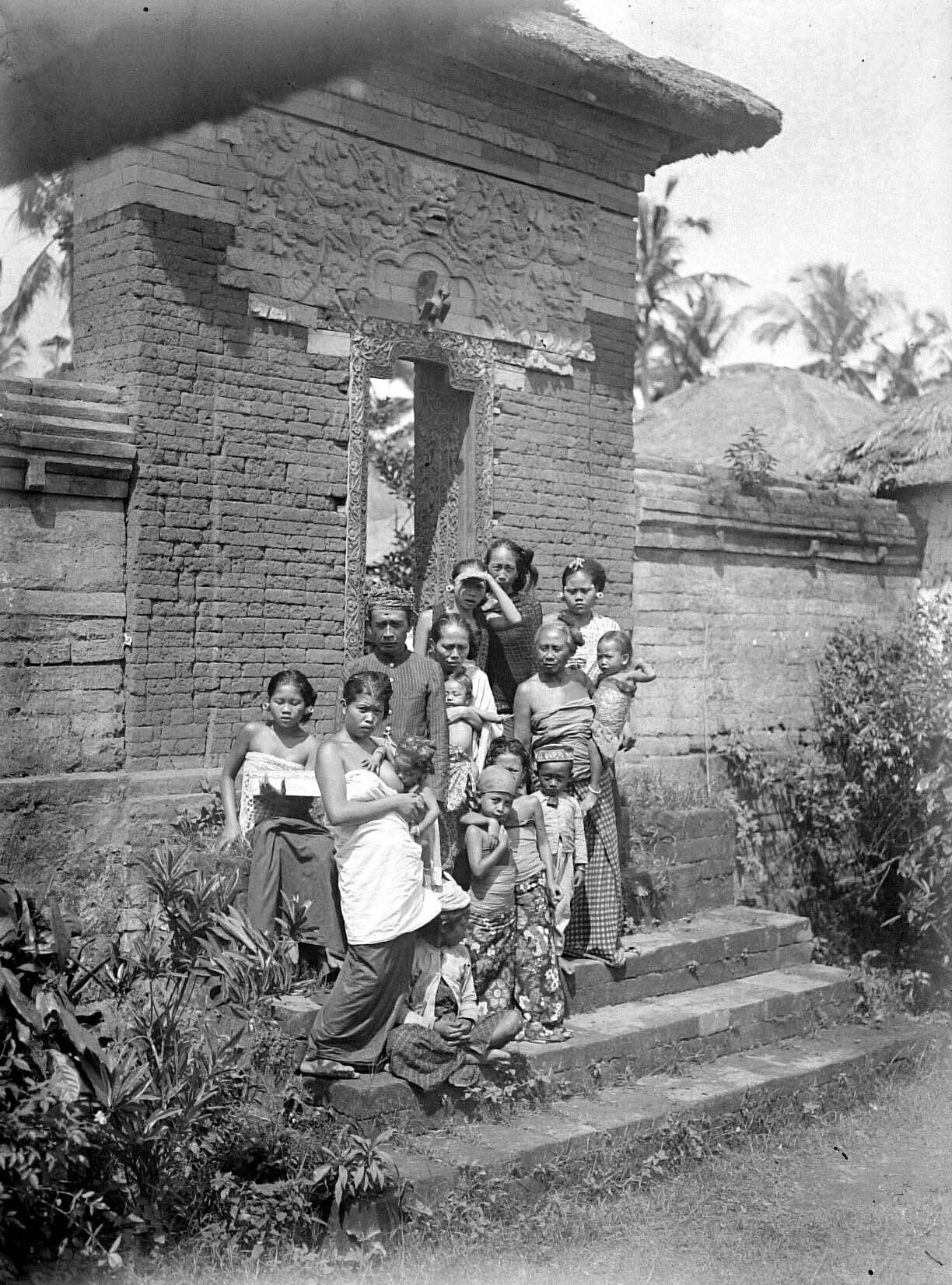 Familie van de Goesti in de poort van de huistempel