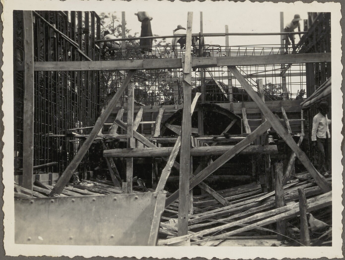 De Javaanse arbeiders brengen de bekisting aan van h...