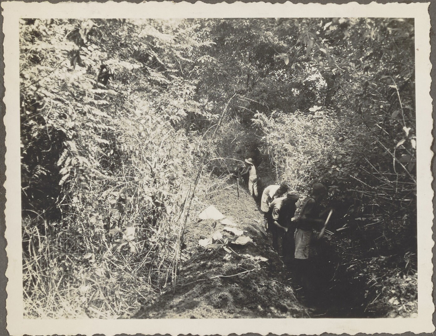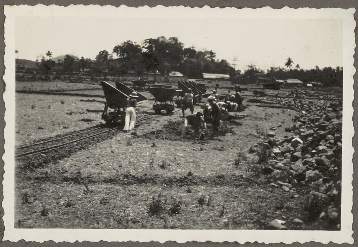 Graven van proefkuilen door Javaanse arbeiders