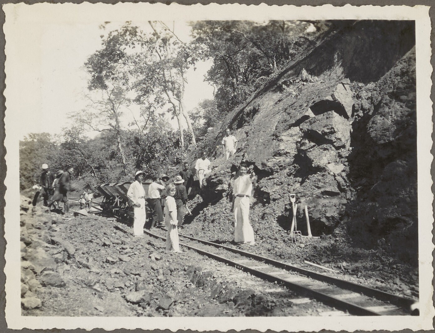 Ruimen van puin na een aardverschuiving bij een spoo...