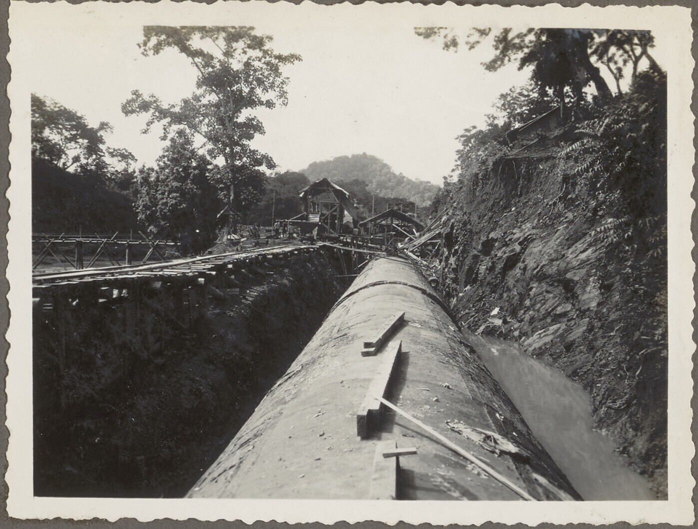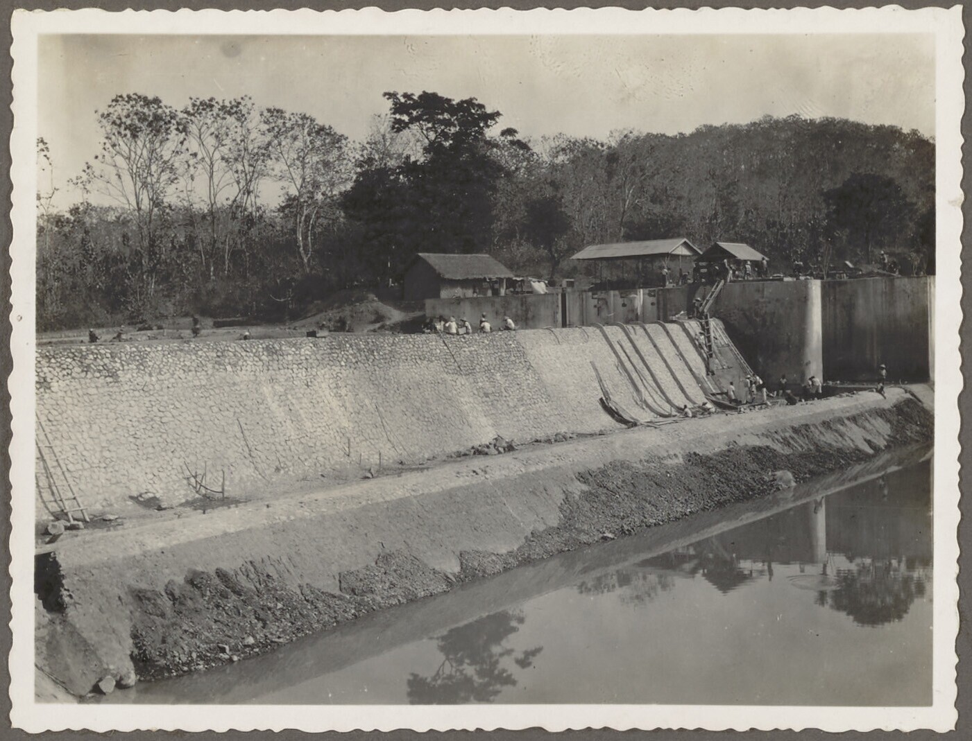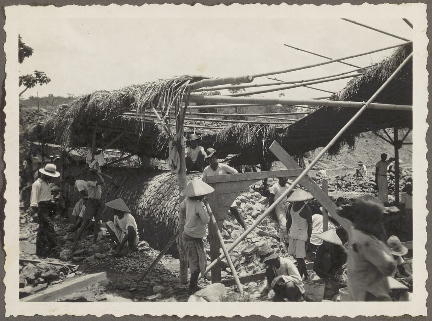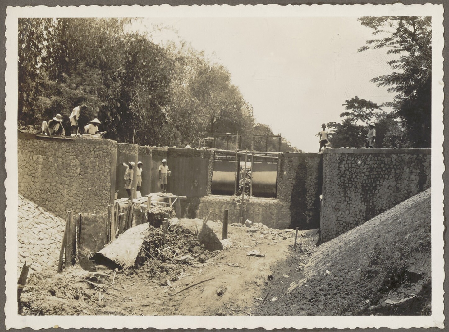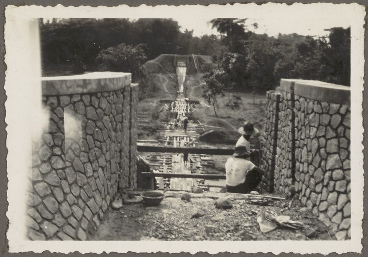Javaanse arbeiders aan het werk in de syphonopening