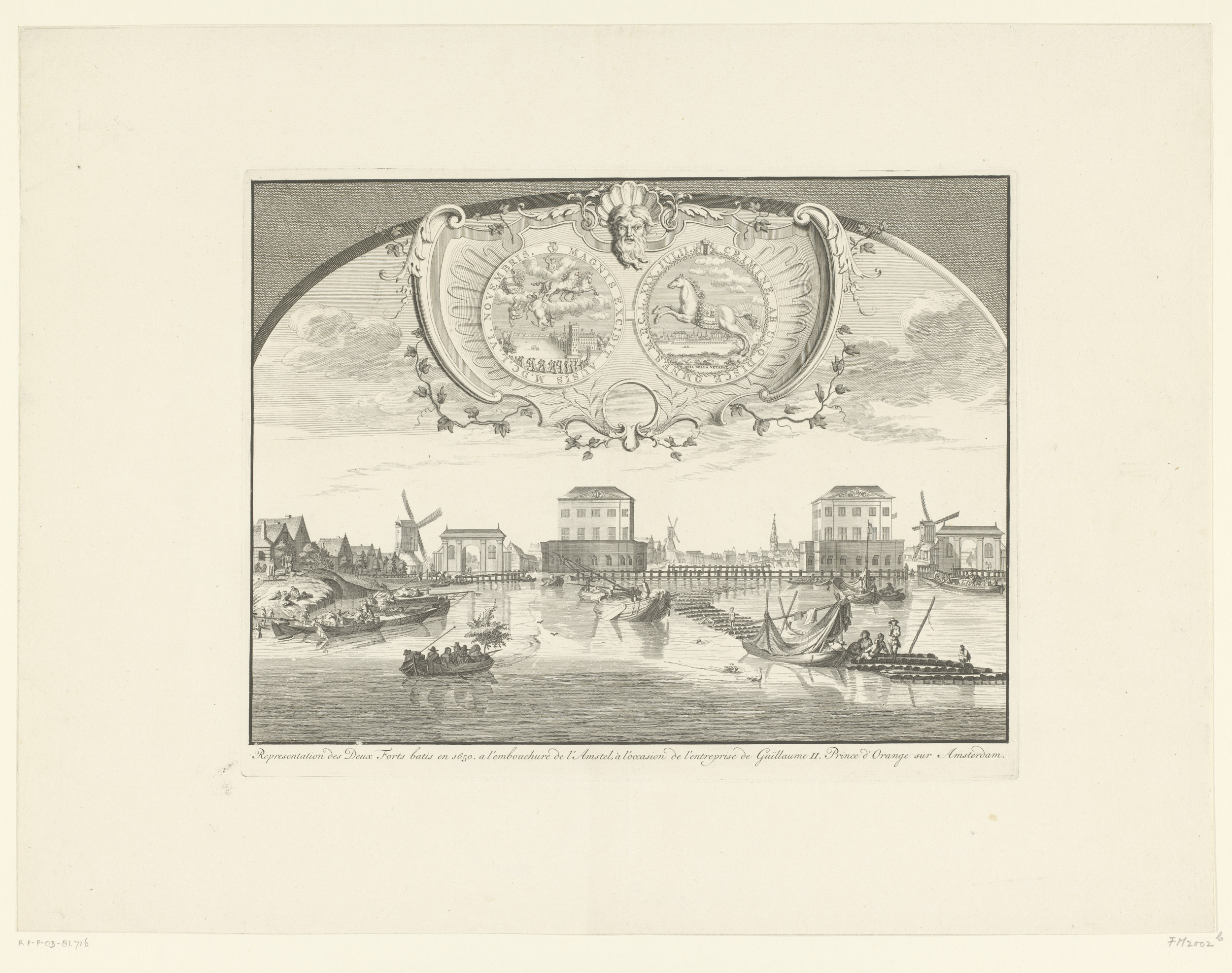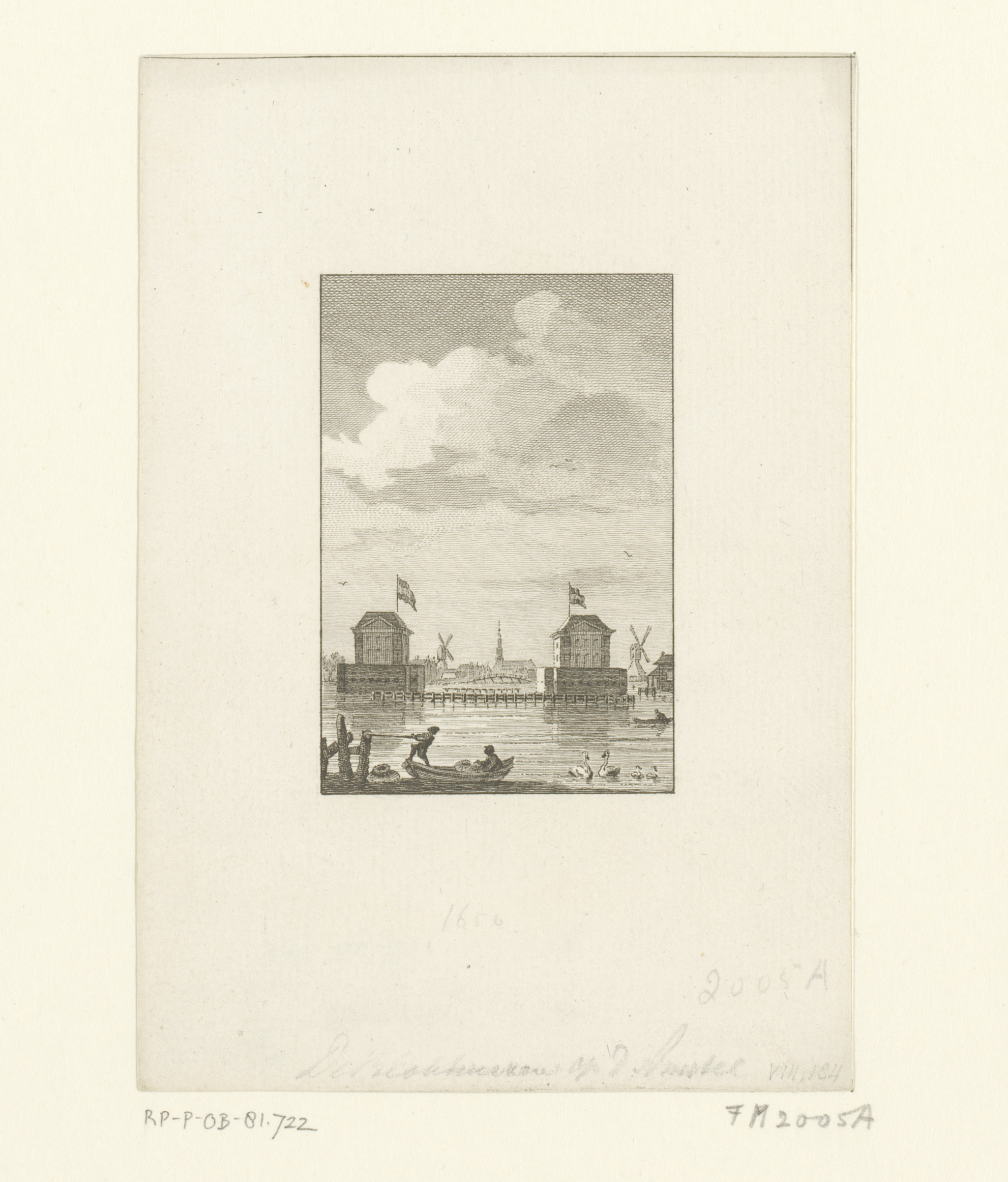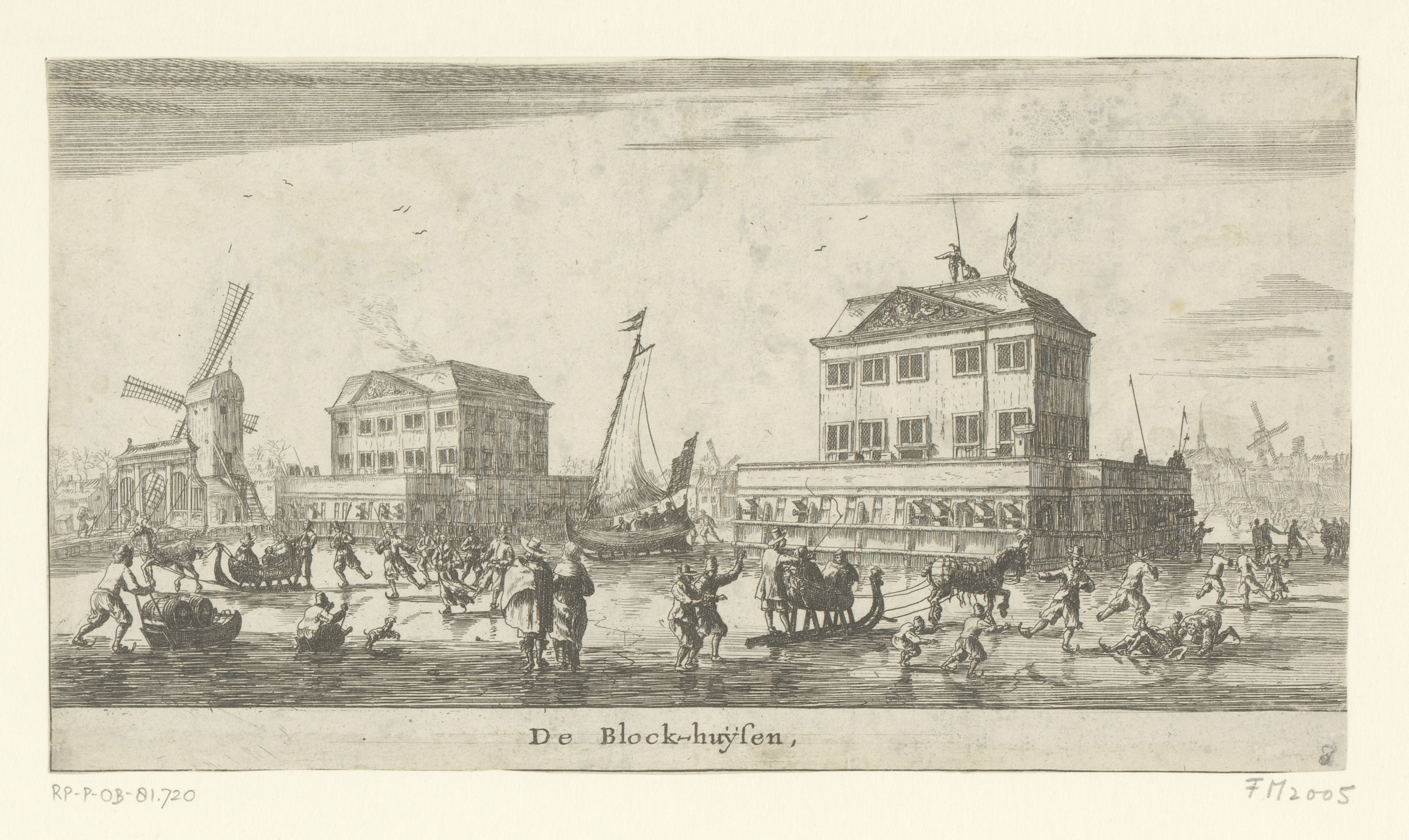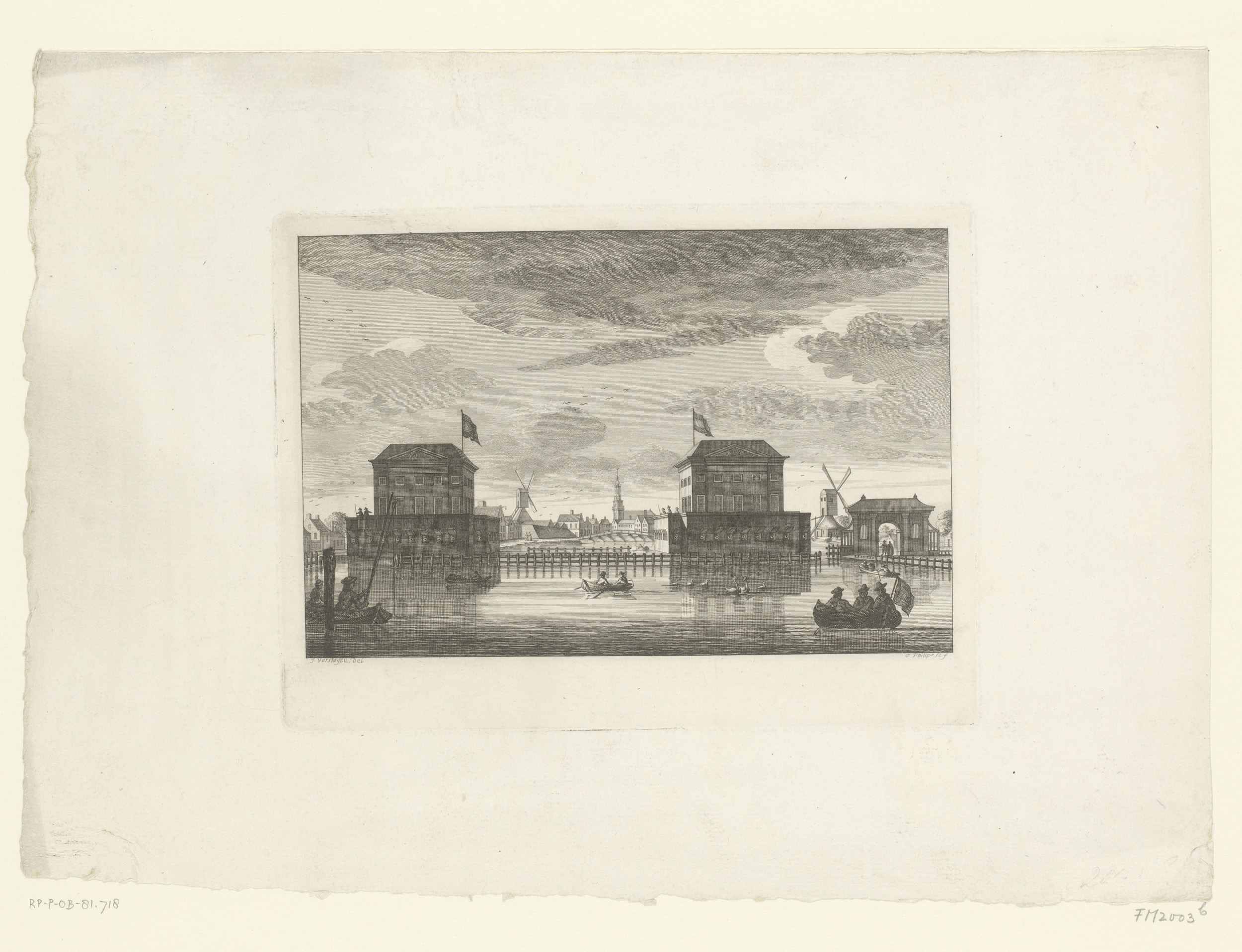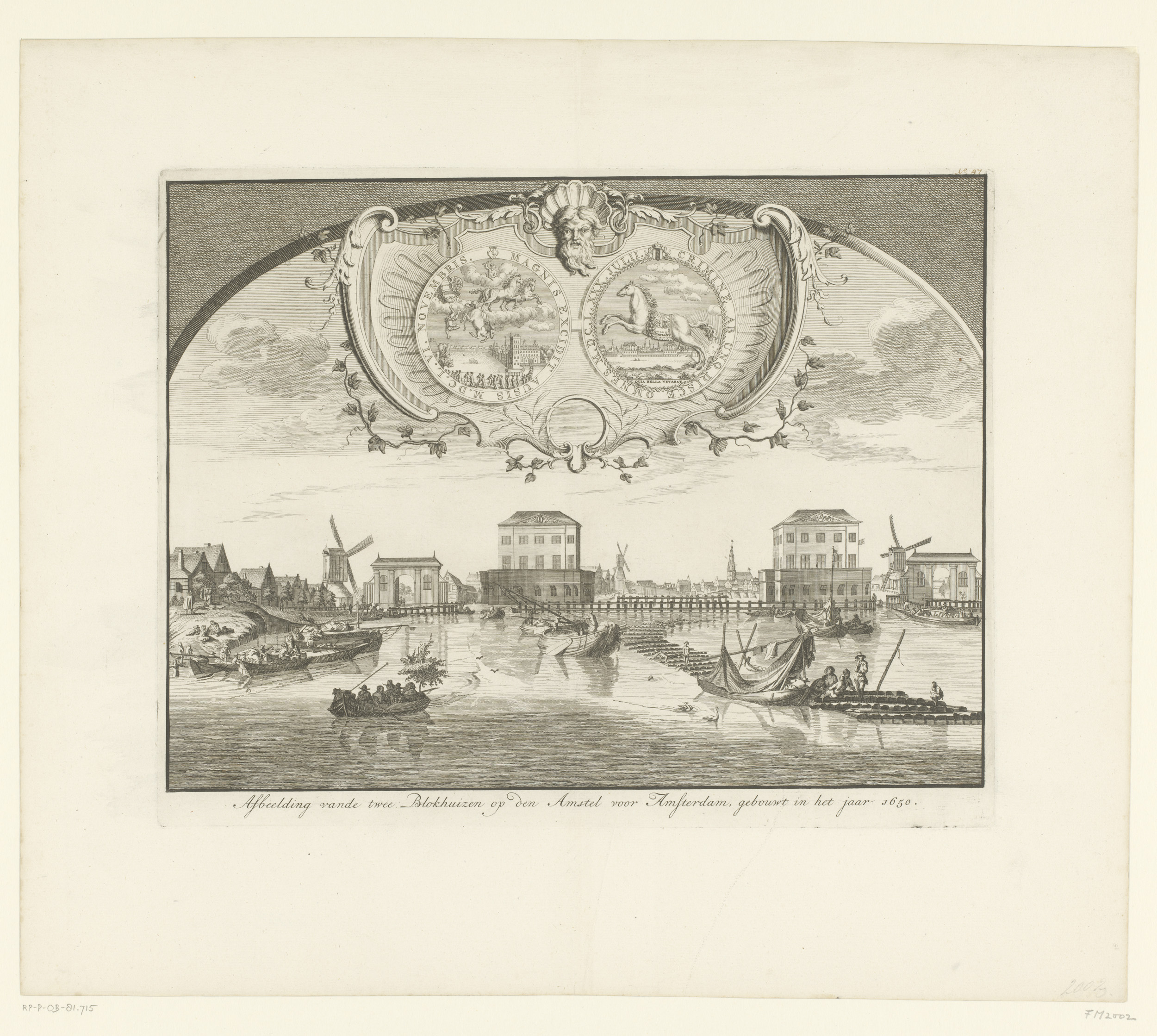 Gezicht op de twee Blokhuizen in de Amstel, 1651-1654