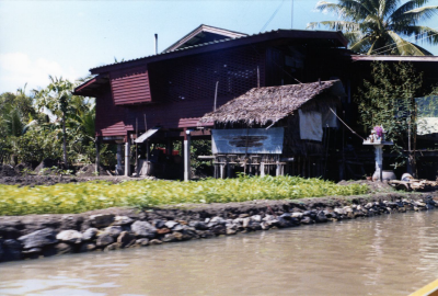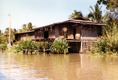 Huis op palen bij Damnoen Saduak, Thailand, 1980.