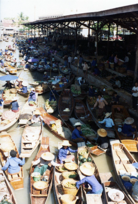 Traditionele boot op een kanaal in Thailand, 1980.
