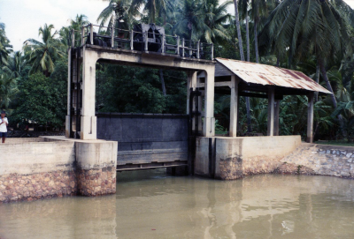 Keersluis met verticale schuif in Thailand, 1980.