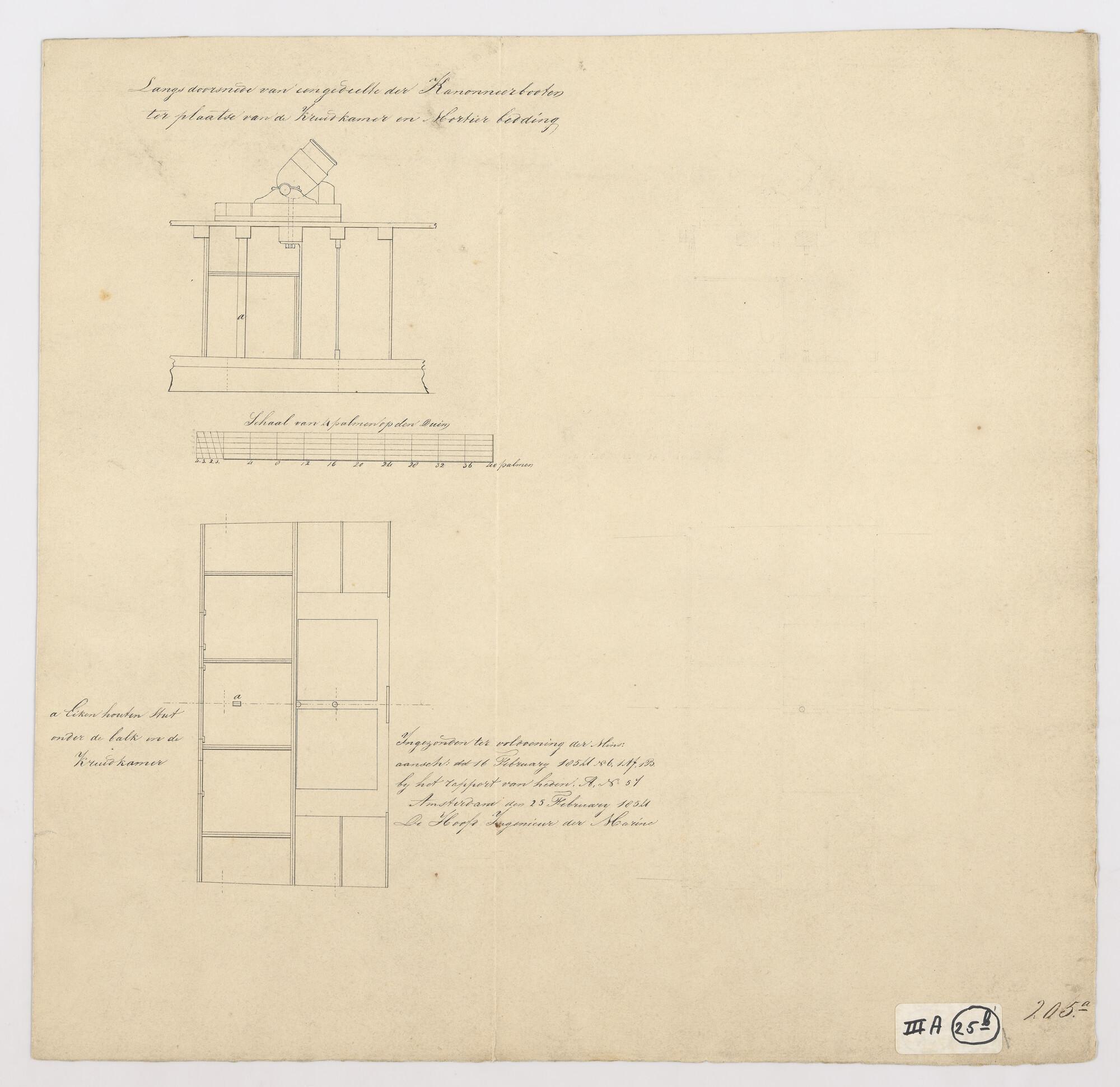 Tekening van de kruitkamer en mortierlading van een ...