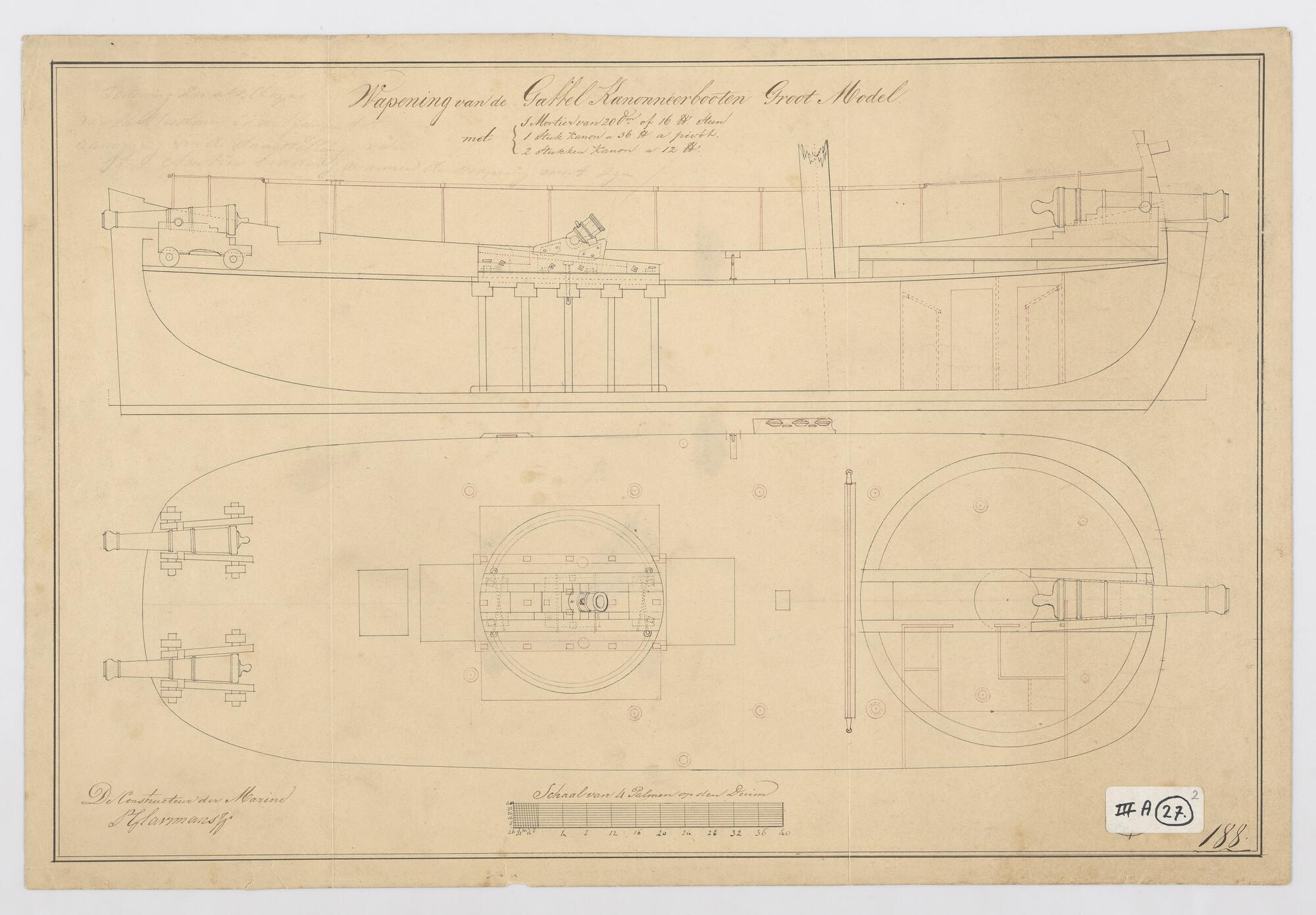 Algemeen plan van een gaffel kanonneerboot