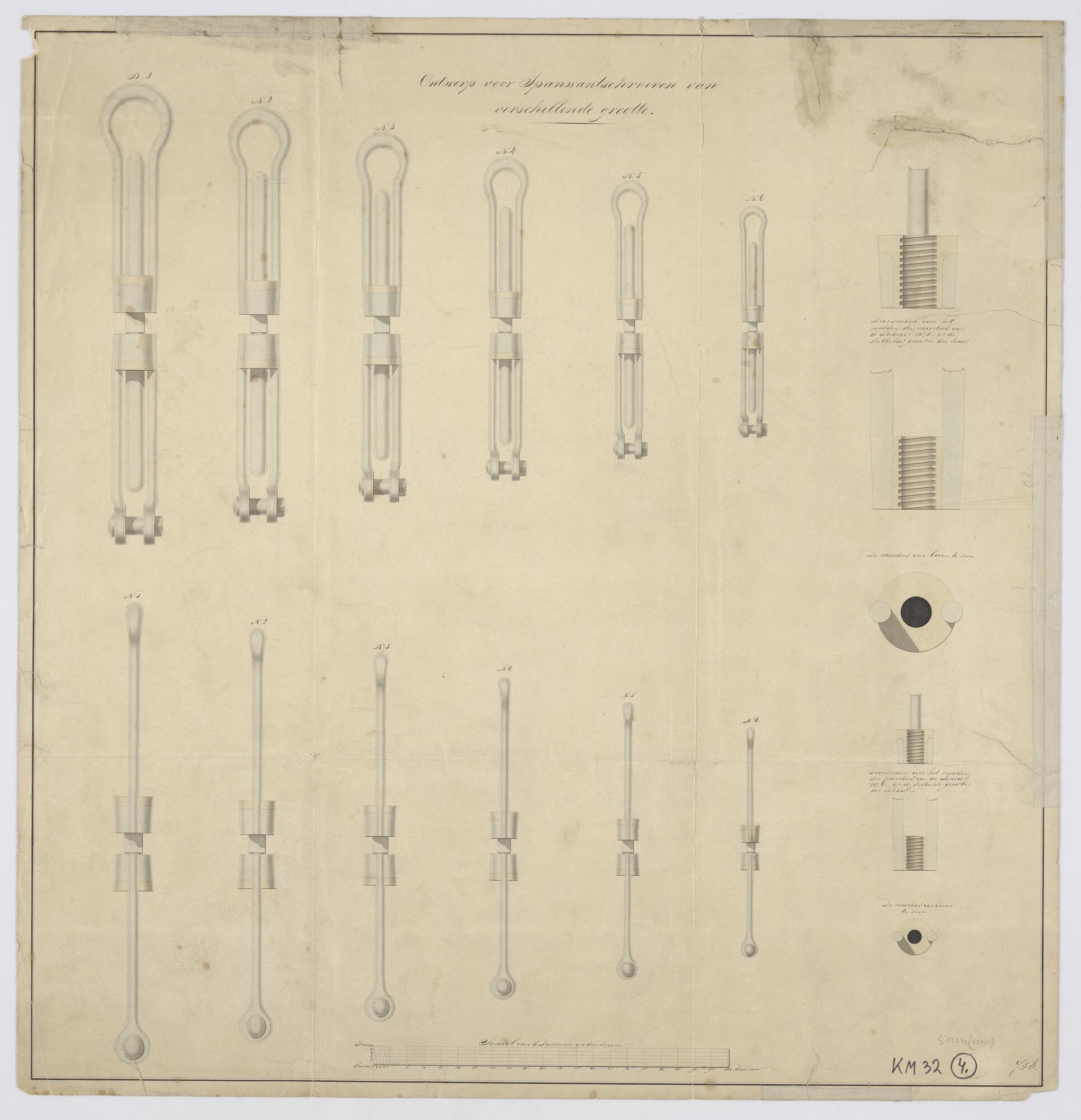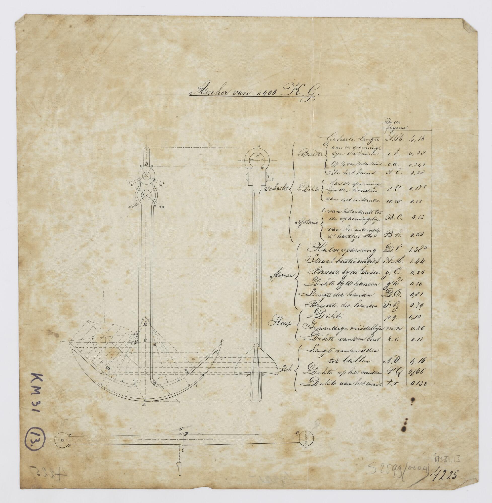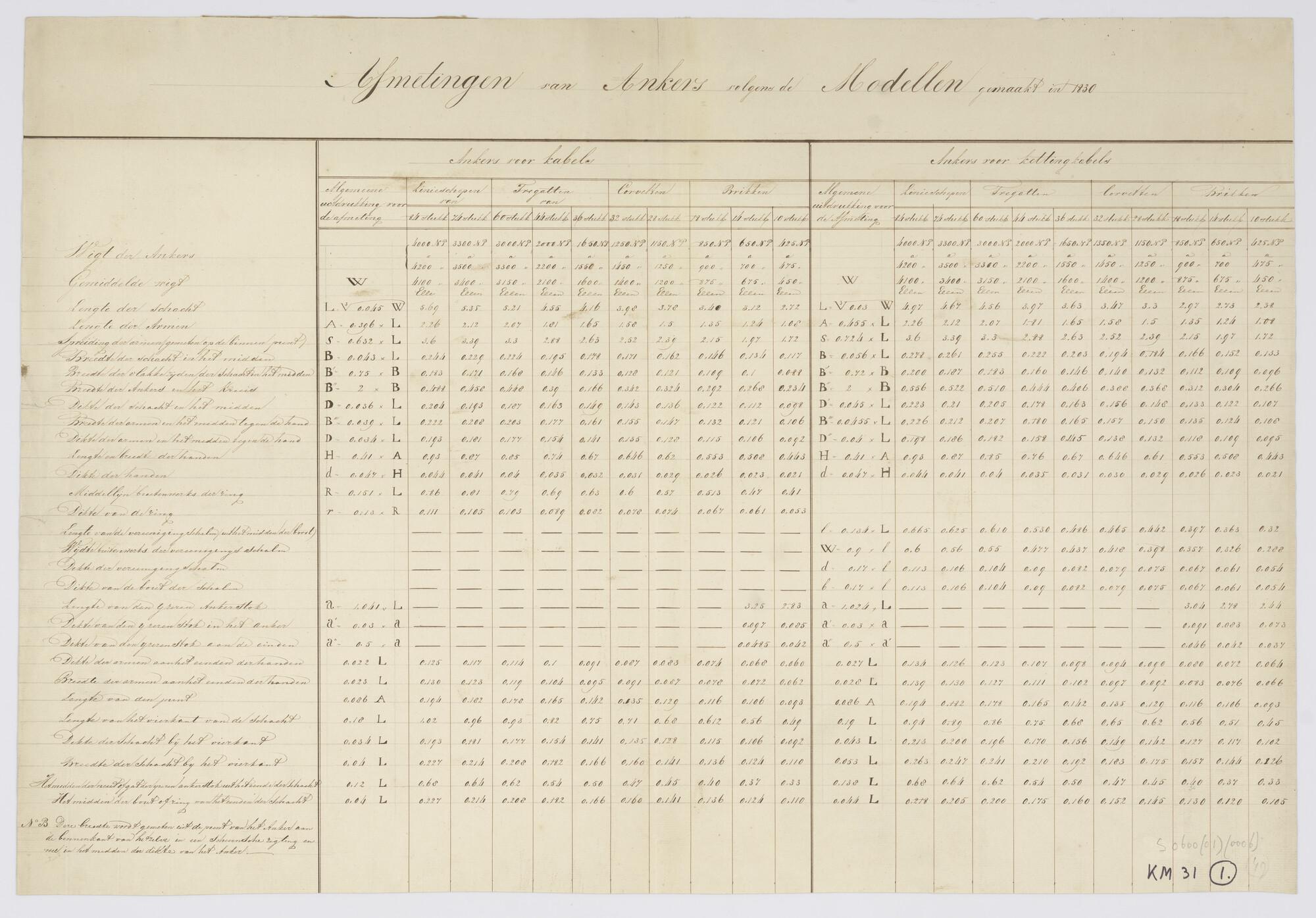 Tabel van afmetingen ankers 1830