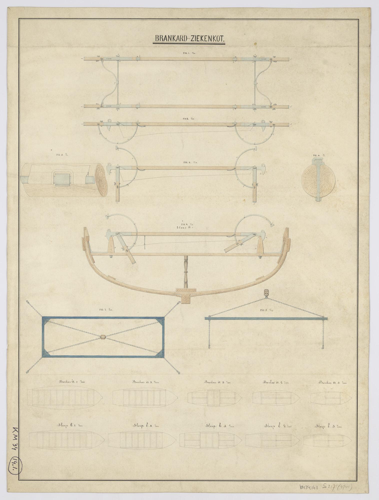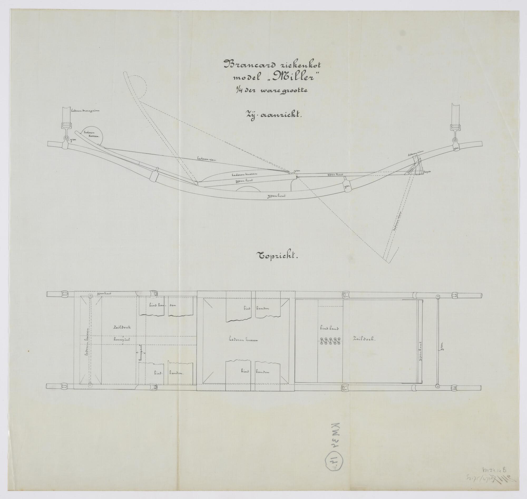 Brancards aan boord sloepen, model "Miller"