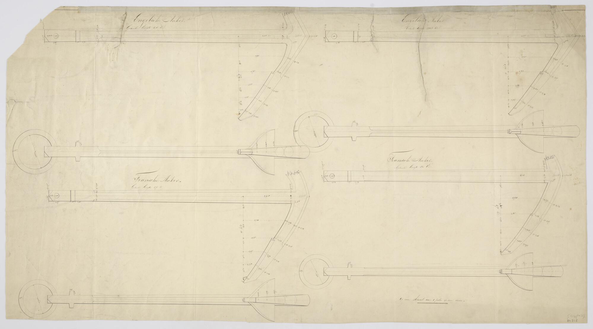 Engels en Frans stokloos anker van verschillende lengte