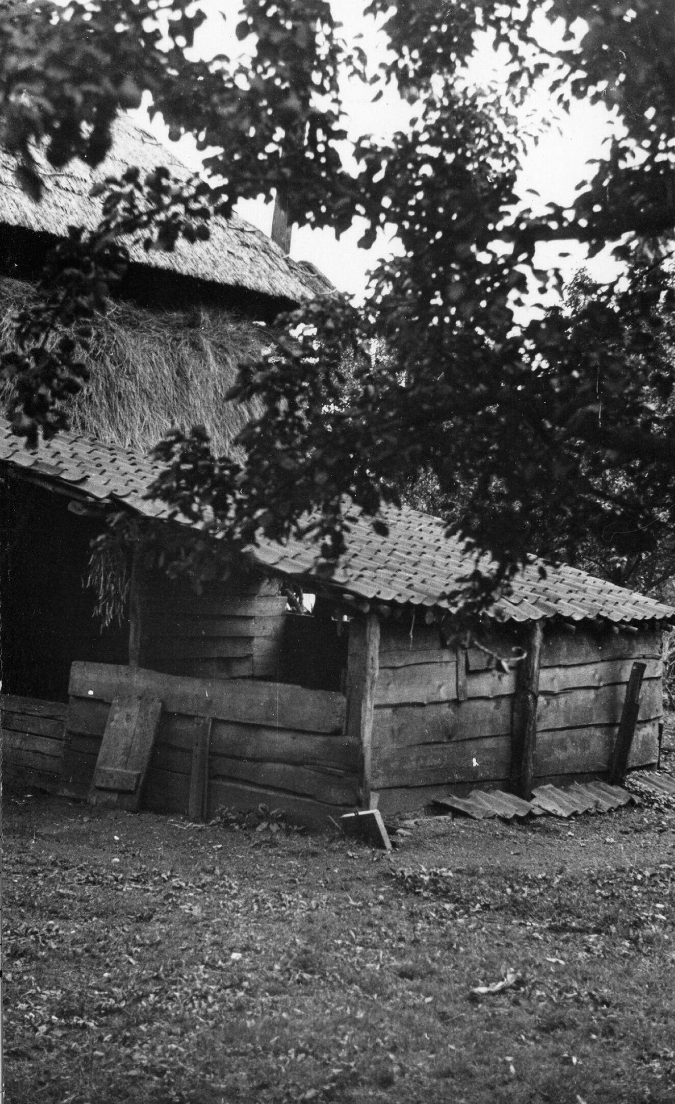 Twee schuren, Achterberg, 1936 (zwart-wit foto)