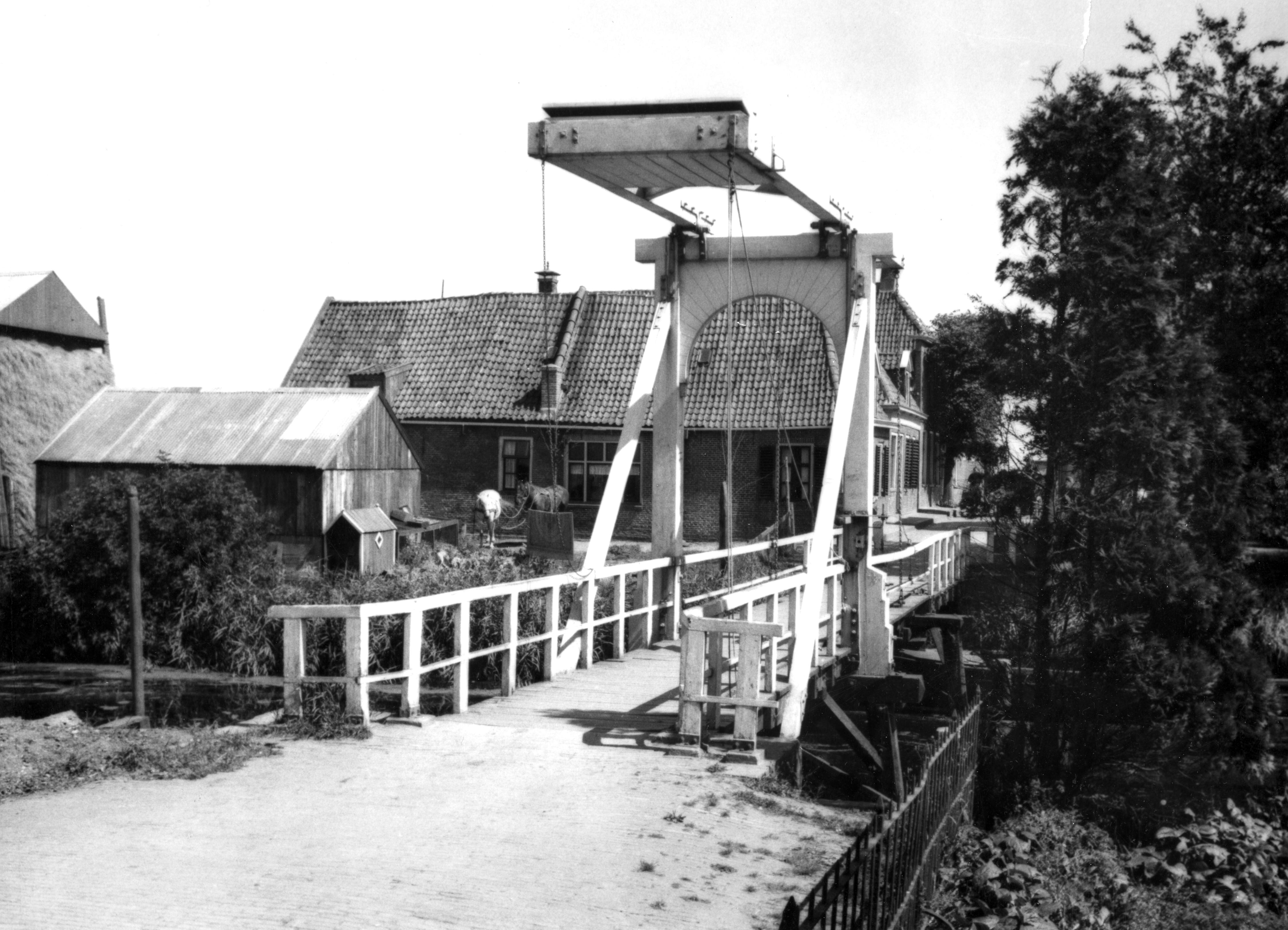 Ophaalbrug, Kuinre, 1944 (zwart-wit foto)