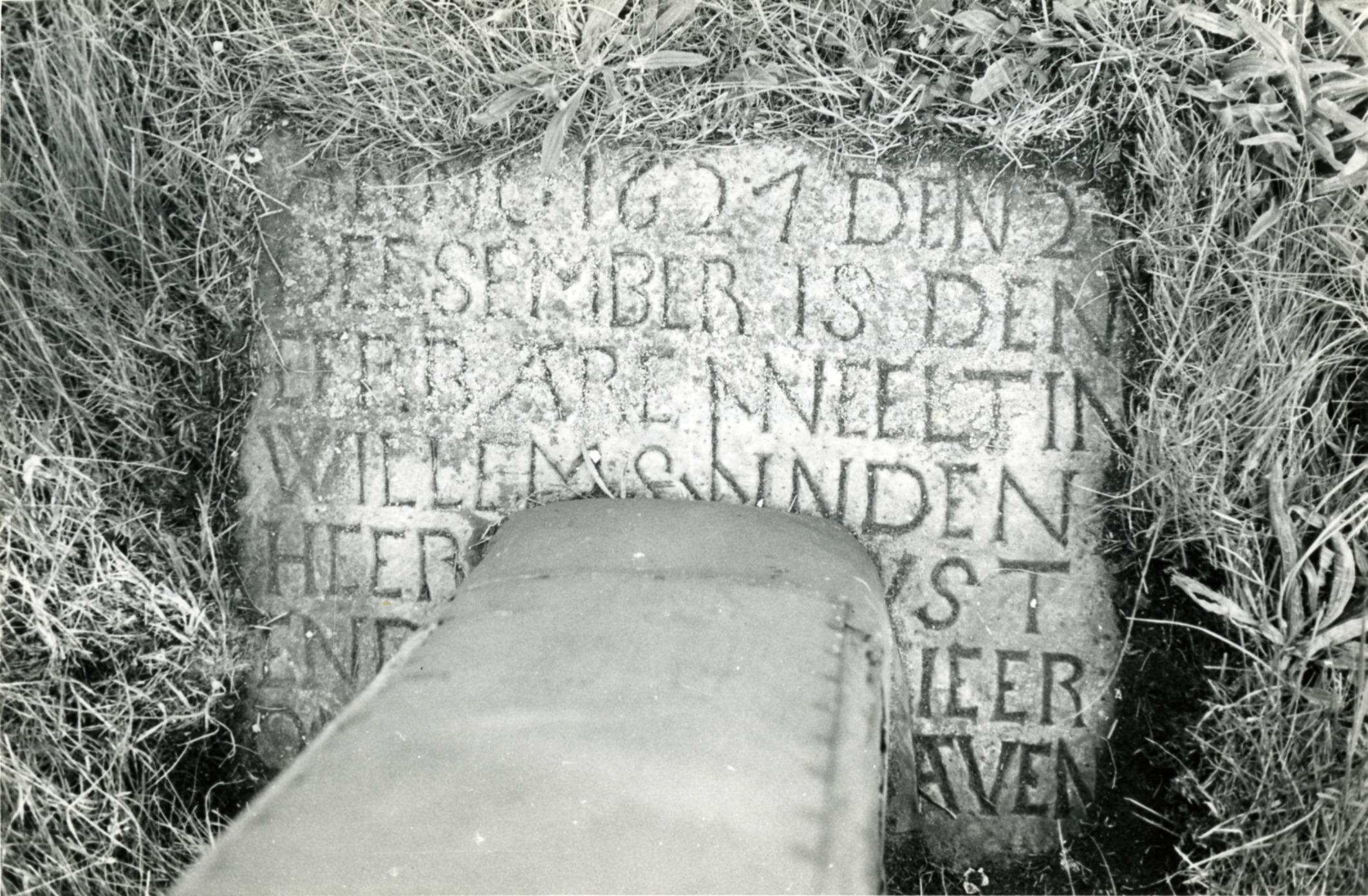 Hergebruikte grafsteen, Spanga, 1944 (zwart-wit foto)