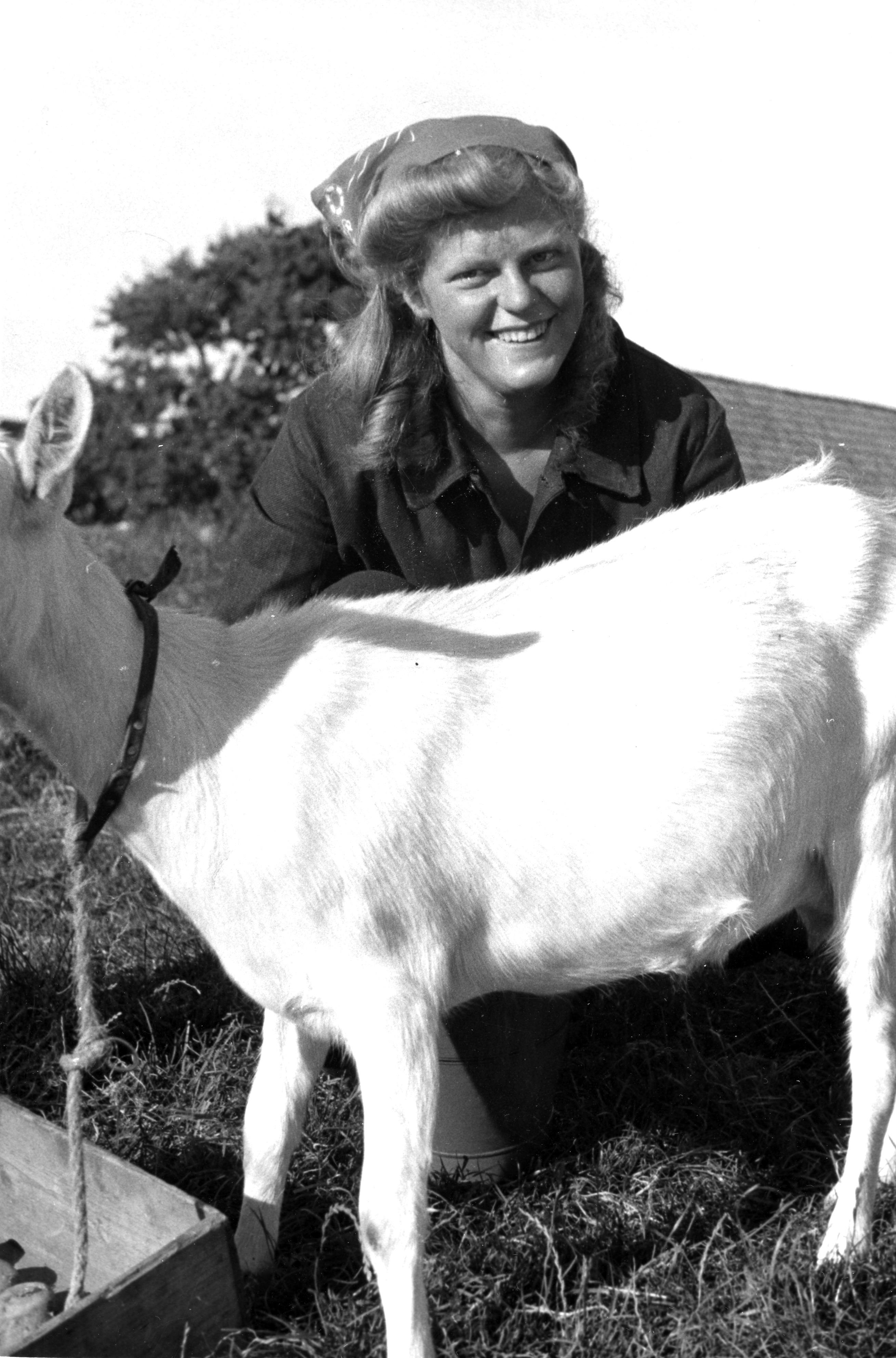 Meisje met geit, Kuinre, 1944 (zwart-wit foto)