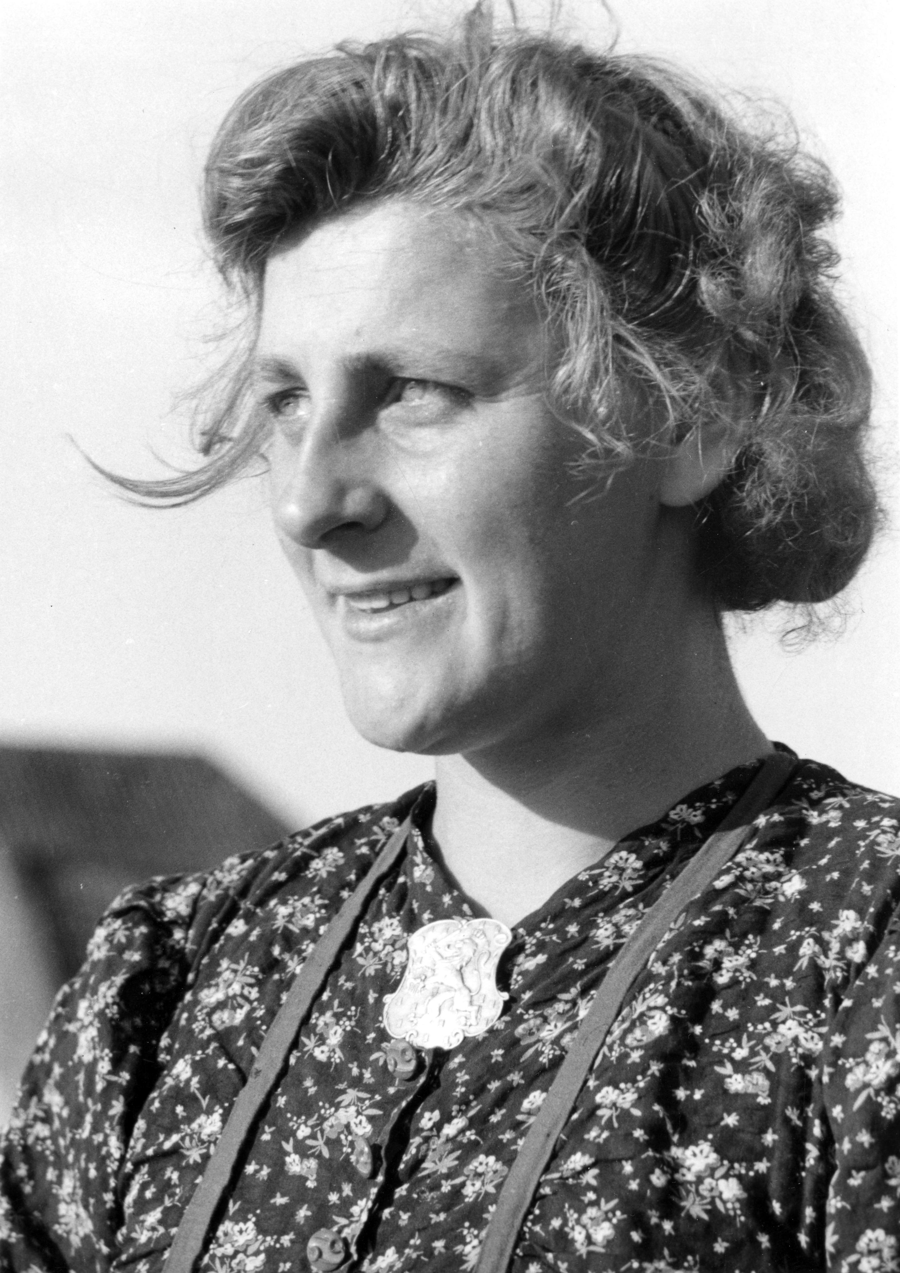 Vrouw met broche, Kuinre, 1944 (zwart-wit foto)