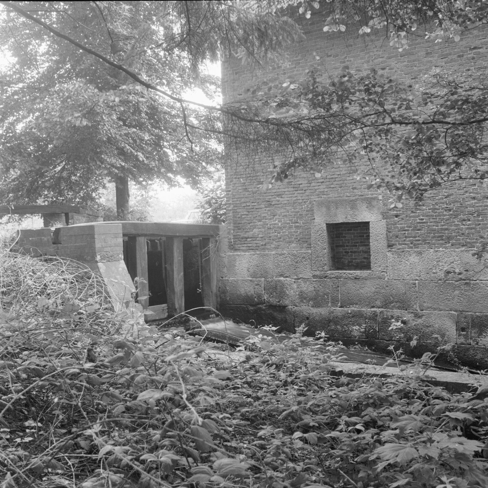 Watergedreven molen met onderslagrad in vervallen staat