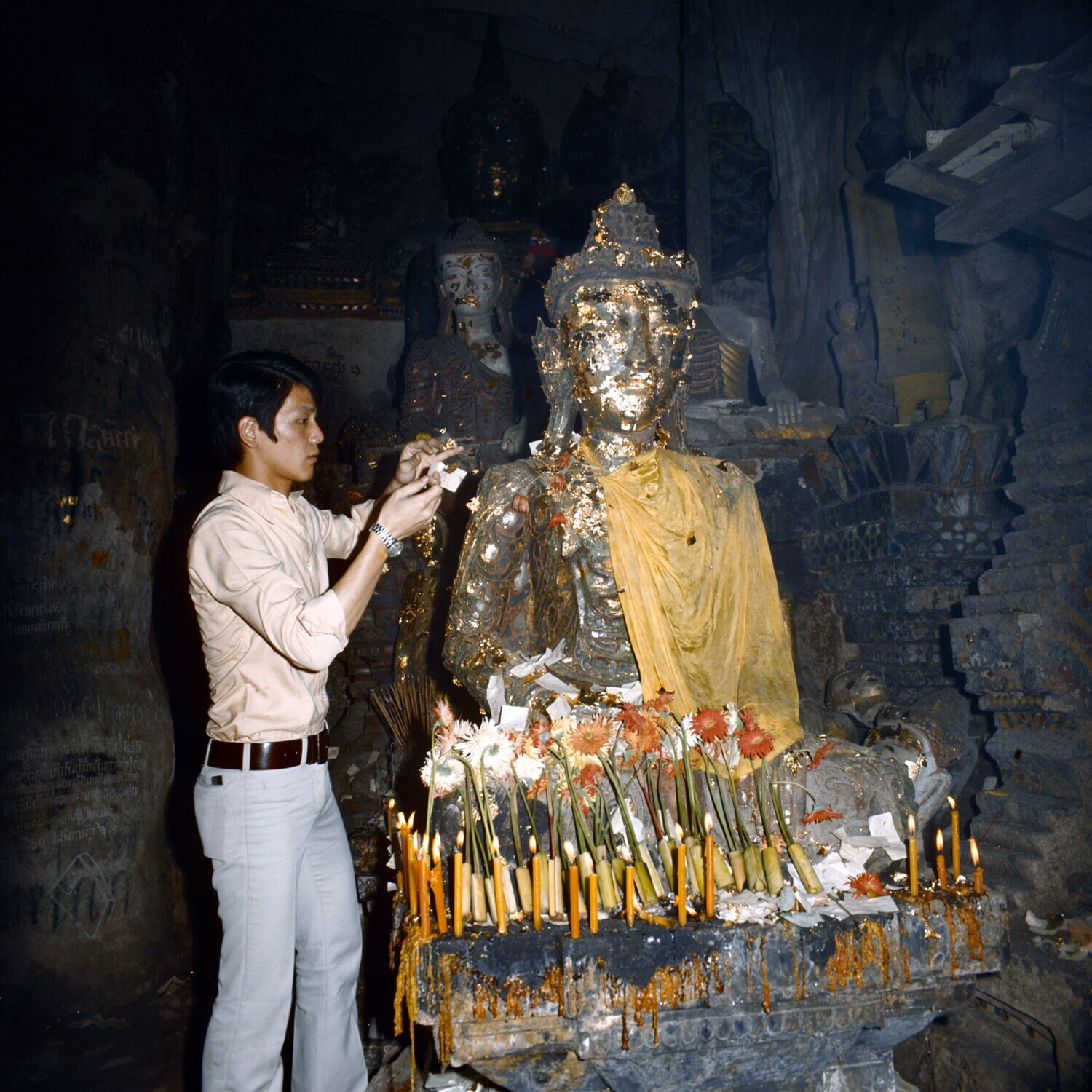 Naast bloemen, kaarsen en wierook is ook het plakken...