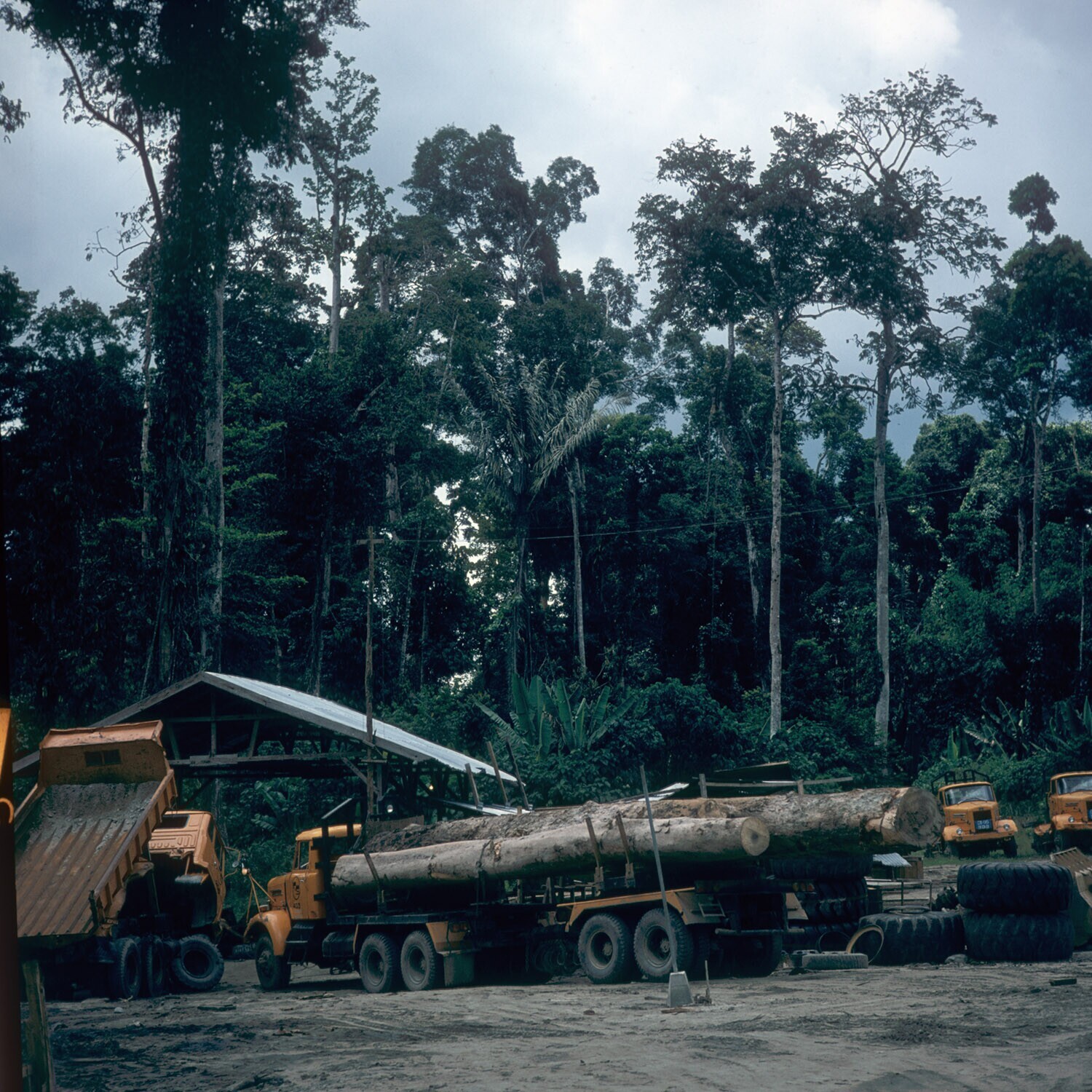 Een vrachtauto met boomstammen gekapt t.b.v. wegenbo...