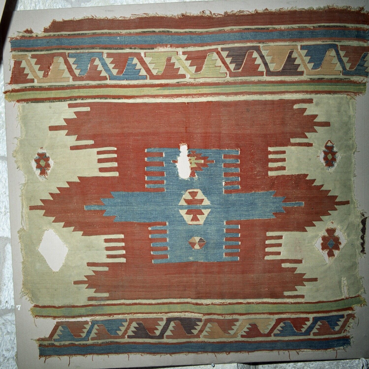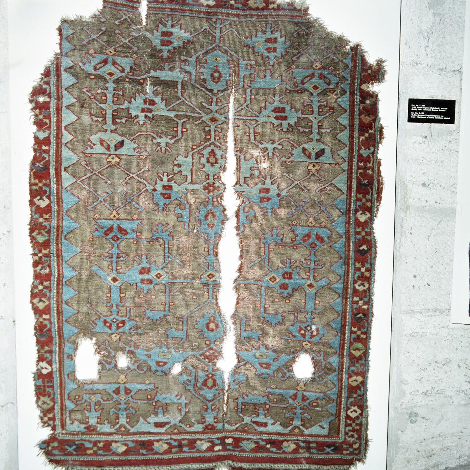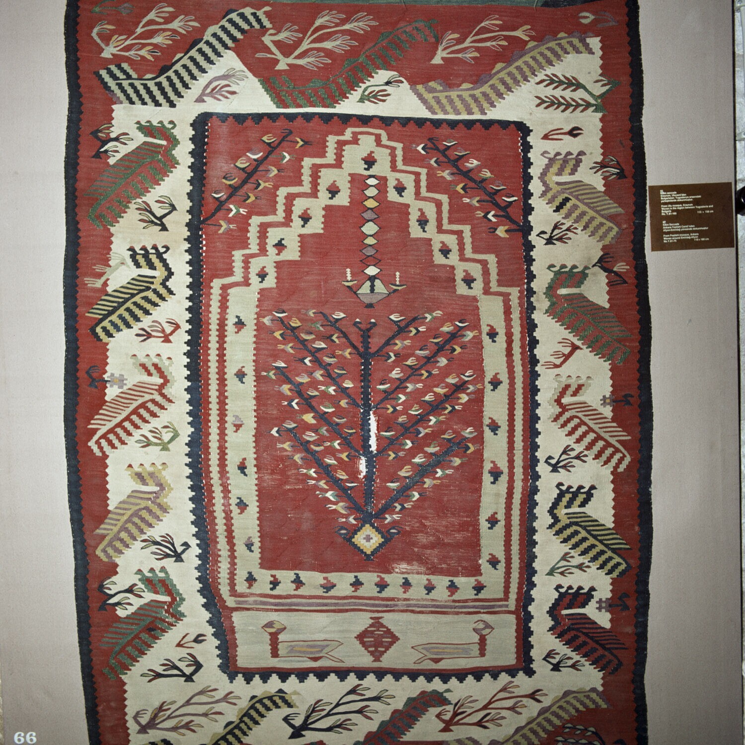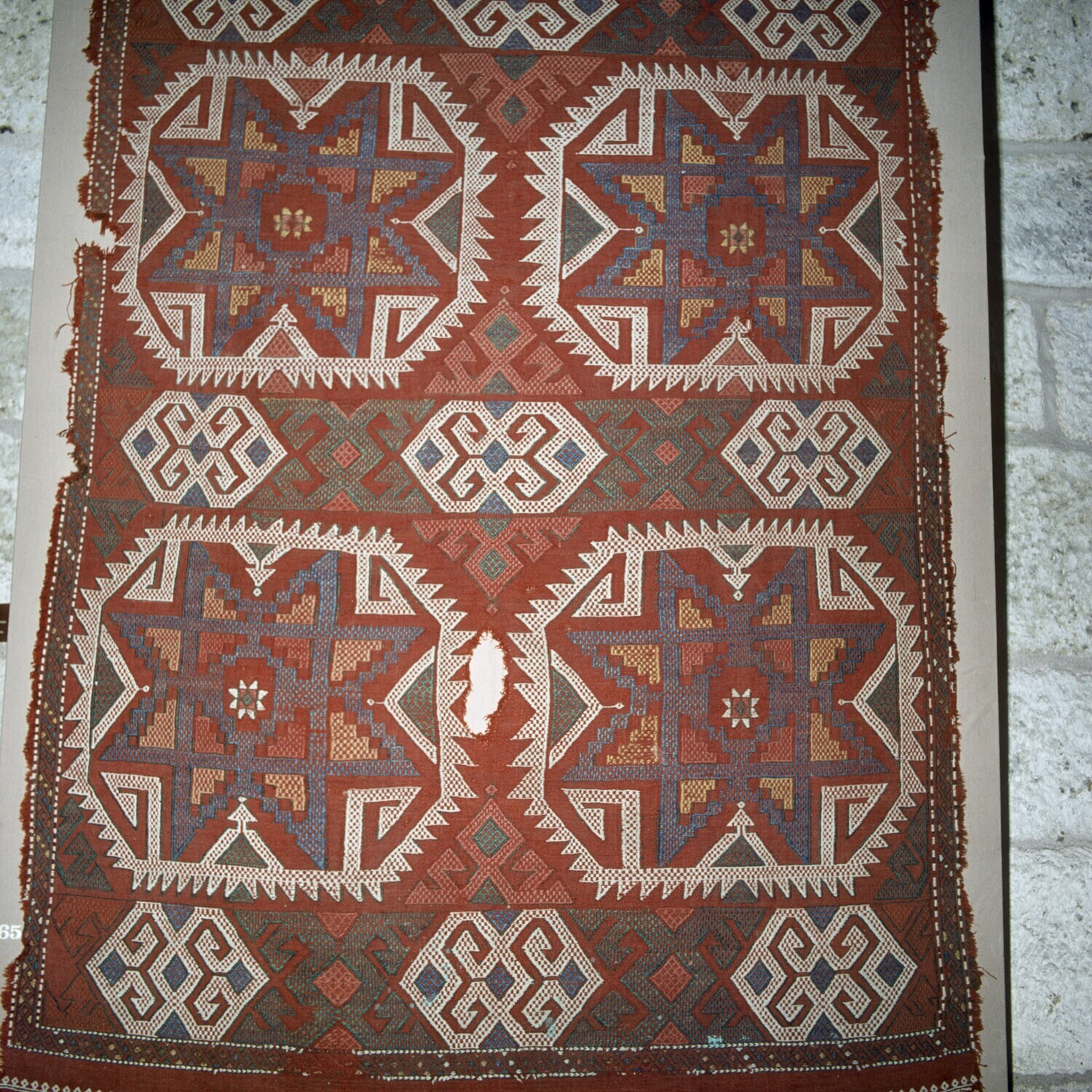 Antiek Turks tapijt tentoongesteld in één van de bij...