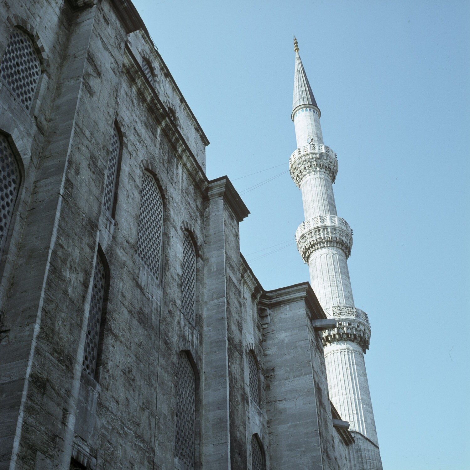 De Blauwe Moskee, één van de minaretten van de Moskee