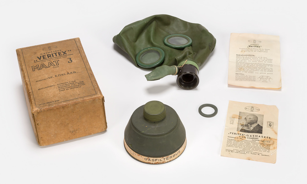 Verpakking met een Nederlands civiel gasmasker