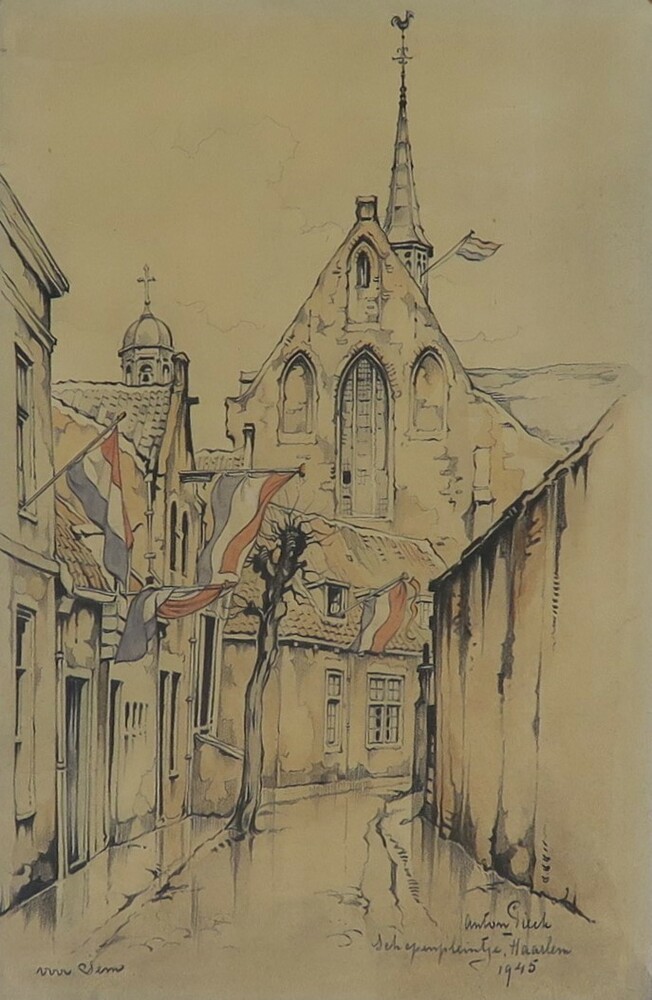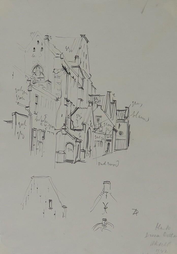 Schets Buurkerkhof, voorstudie boekillustratie of ka...