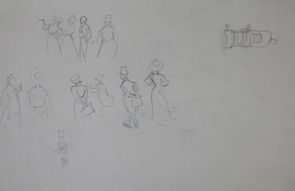 Schetsjes van mensen, voorstudie kalenderplaat 'Stoo...