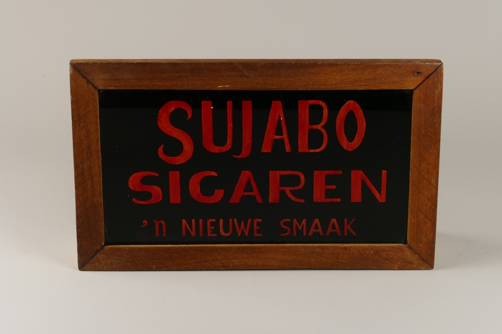 reclamebord glas. in houten lijst Sujabo sigaren ´n ...
